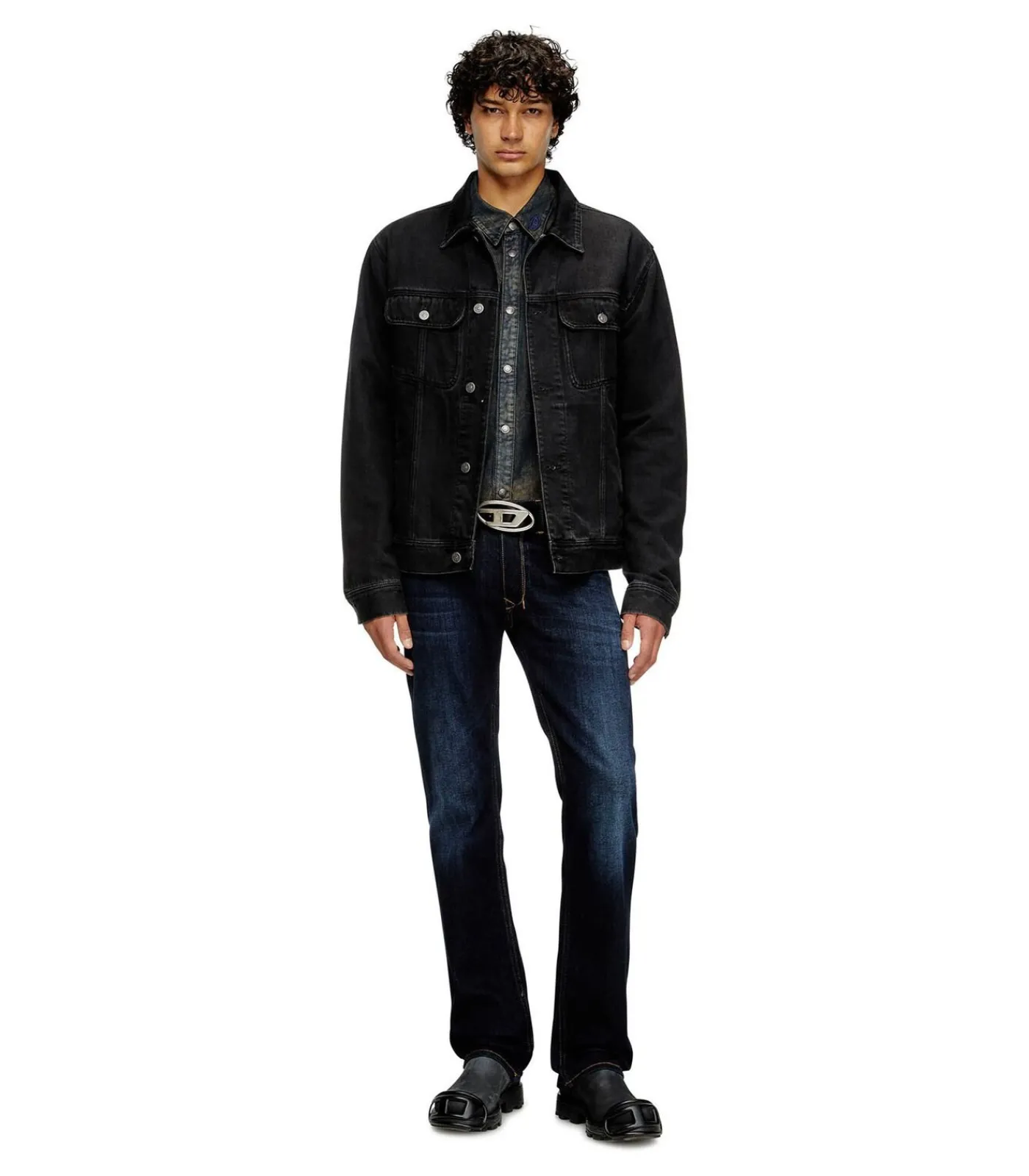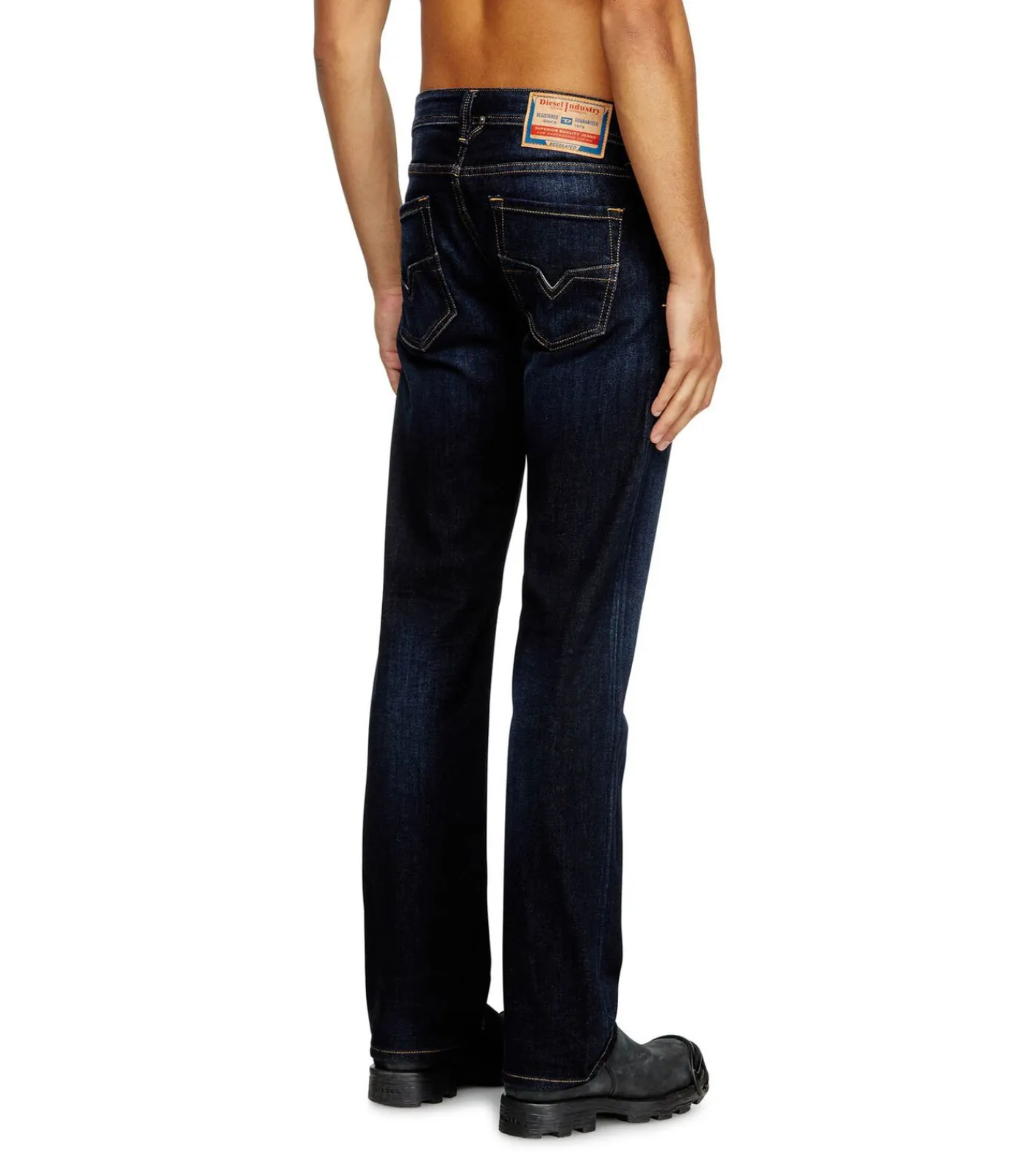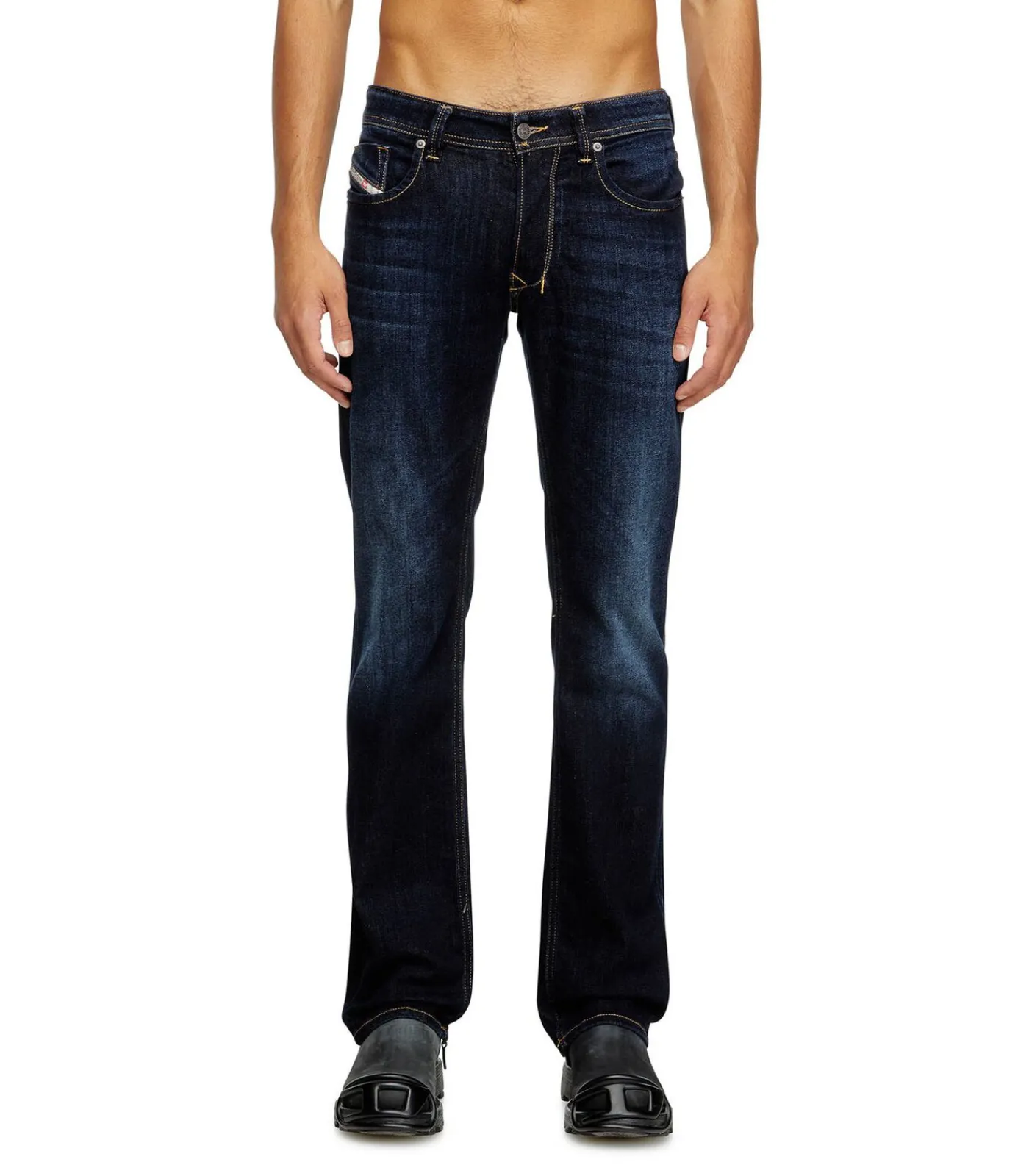 Heren jeans 1985 LARKEE van Diesel. Elastische jeans in donkere wassing met permanente zitplooien, straight fit, beenlengte 32