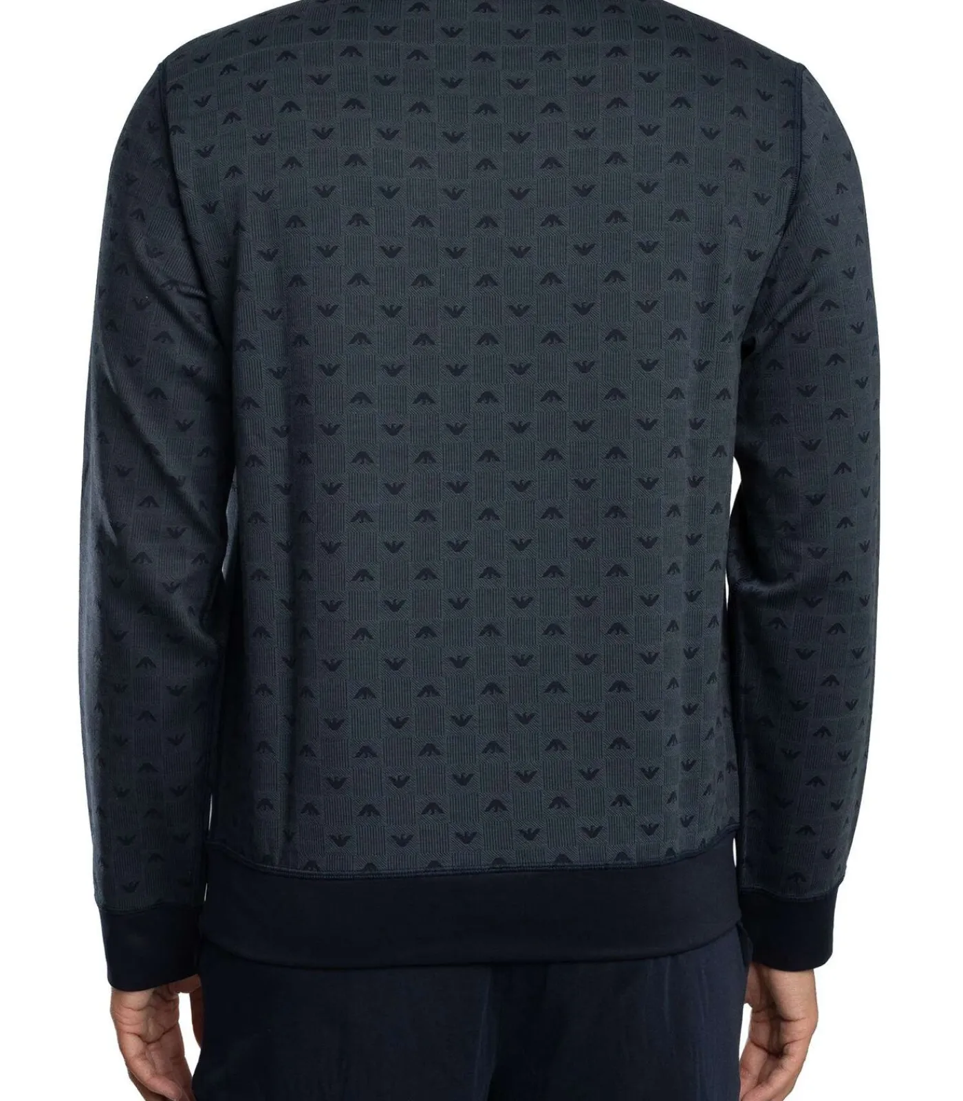 Emporio Armani introduceert de Felpa Lounge Sweatshirt in Blue Jacquard, ontworpen voor comfort met een opvallende merkrand. Het all–over logopatroon weerspiegelt de moderne esthetiek van het merk, terwijl elastische manchetten, zoom en kraag zorgen voor een comfortabele pasvorm die zijn vorm behoudt. Gemaakt als onderdeel van de Emporio Armani loungewear–collectie, is de sweatshirt gemaakt van zachte en duurzame stof die zacht aanvoelt op de huid en tegelijkertijd ademend is. Stijlvol en praktisch, deze sweatshirt biedt de perfecte mix van comfort en merkaccent.