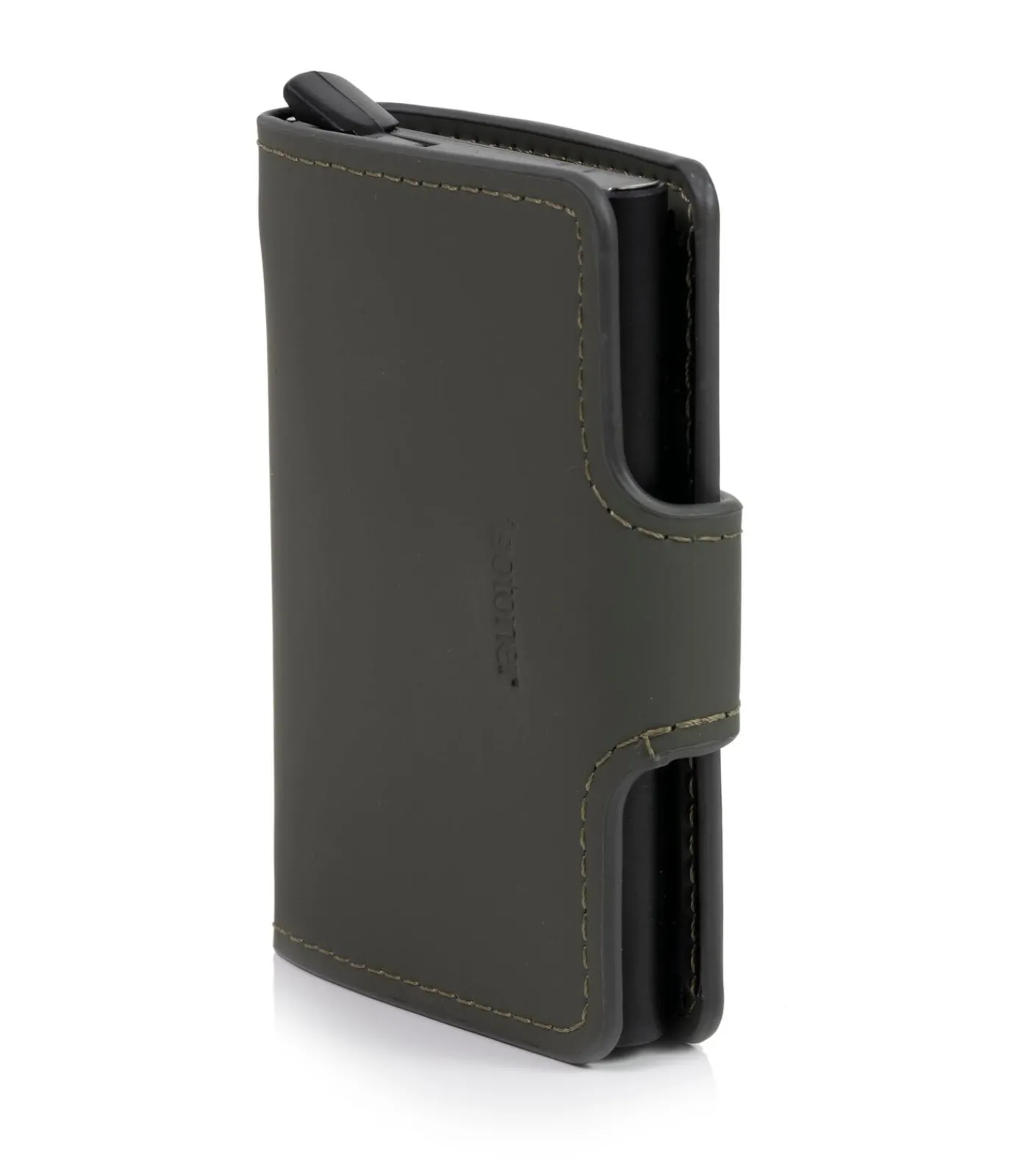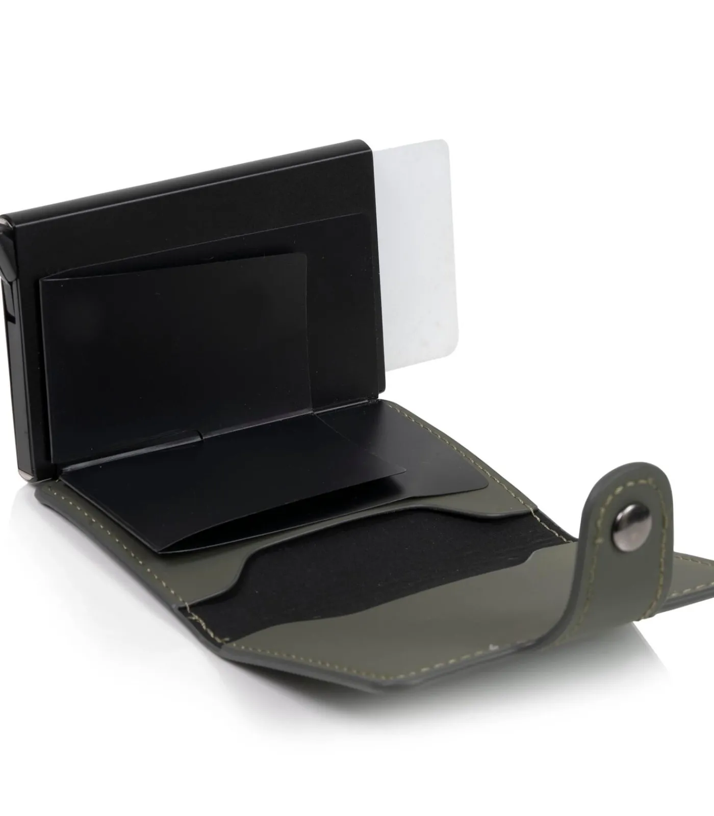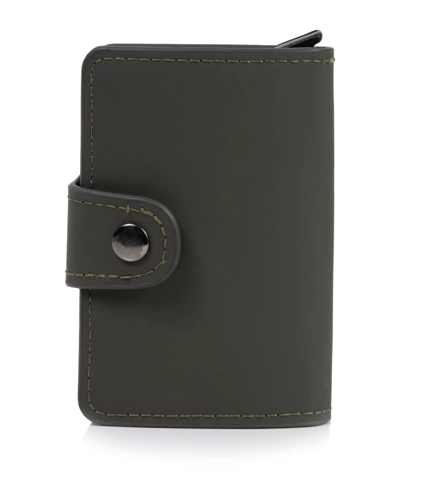 Dit kaki metalen etui, Mixed, is zowel functioneel als praktisch. Met zijn compacte afmetingen van 9,5 x 6 x 1 cm past hij gemakkelijk in elke zak. In dit metalen etui passen maximaal 7 kaarten en dankzij het automatische uittreksysteem kun je je kaarten eruit trekken zonder dat ze eruit vallen. De rubberen afwerking voegt een vleugje elegantie toe aan dit metalen etui. Deze Mixed metalen kaarthoes is voorzien van anti–RFID bescherming om het hacken van kaarten te voorkomen. De voering heeft een beschermlaag die de overdracht van digitale informatie tussen je bankpas en een externe scanner blokkeert.