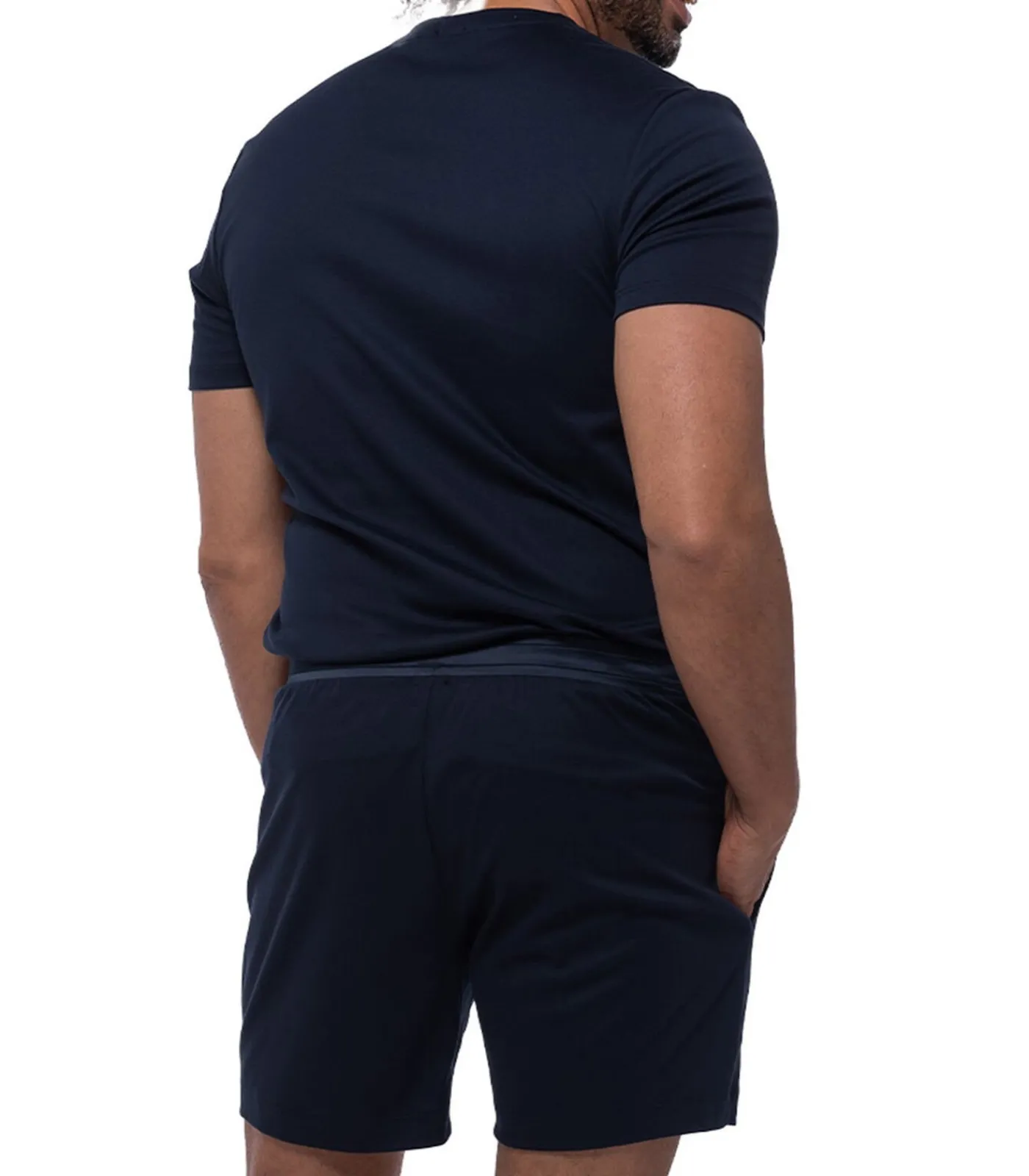 Aangenaam comfort ontmoet casual stijl: de herenpyjama’s uit de Aarhus–serie combineren een T–shirt van zacht katoen met een klassieke ronde hals en borstzak met een short van superfijne interlockstof. De comfortabele geweven tailleband, steekzakken en het luchtige ontwerp maken hem ideaal voor warme nachten en ontspannende uren thuis.