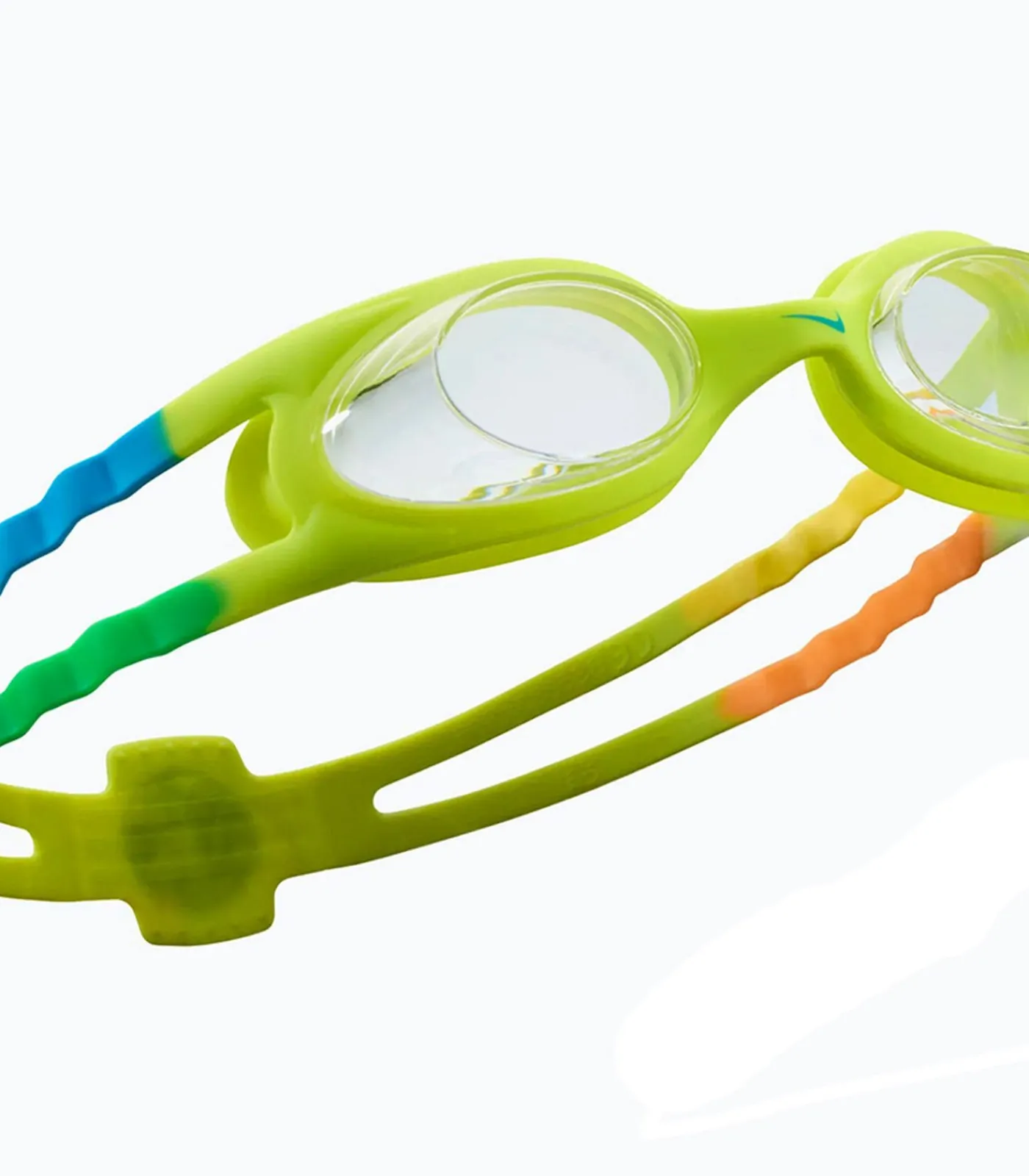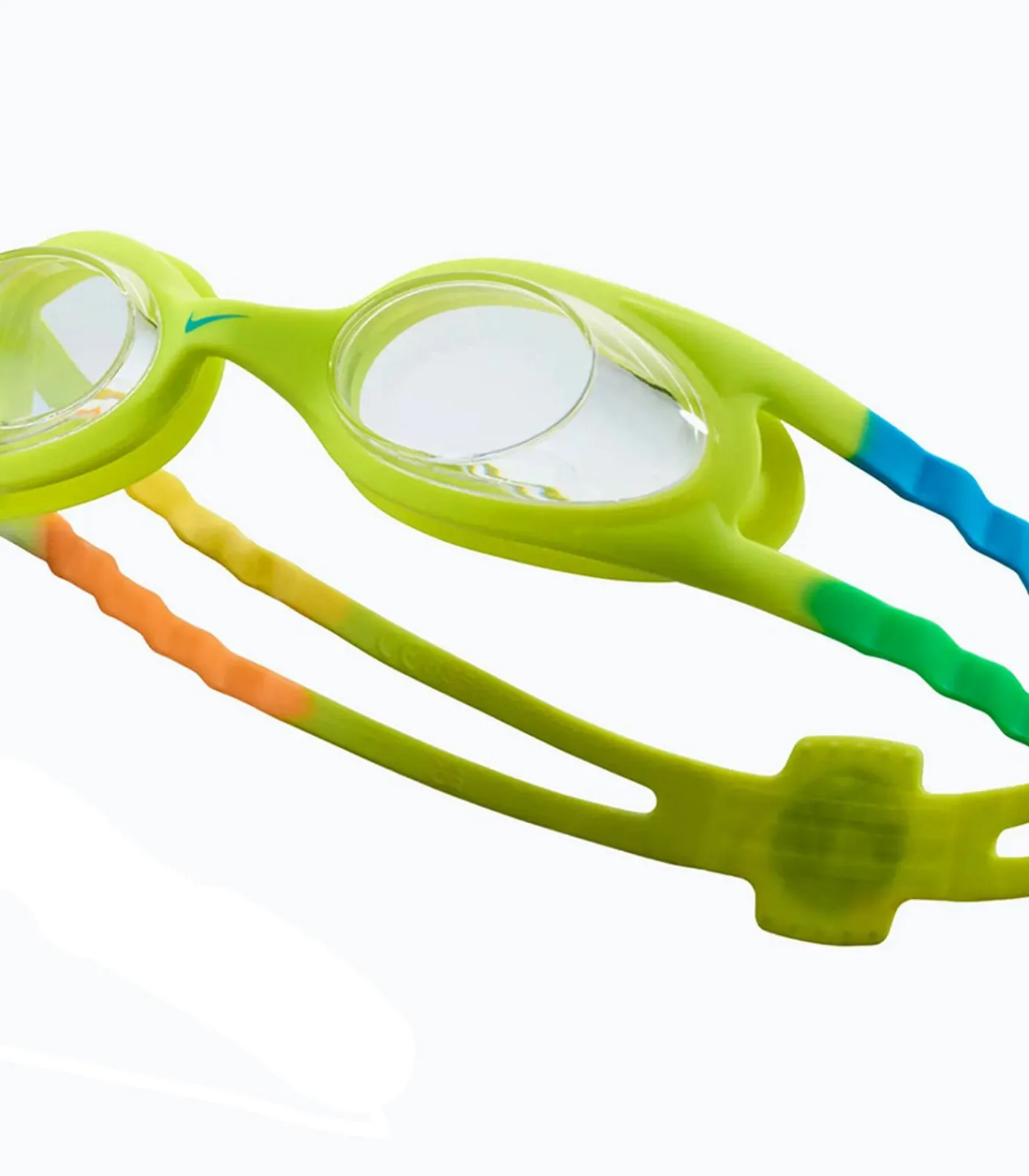 Nike zwembril met groene logo: een ideale keuze voor kinderen tussen de leeftijd van 3 en 6 jaar. De zwembril bestaat uit een combinatie van 80% silicium en 20% polycarbonaat, waardoor het bijzonder flexibel is en goed aansluit aan de hoofd van je kind. Het frame is zacht gemaakt voor meer comfortabel gebruik. De zwembril wordt versierd met de beruchte Nike–logo en is daarom een mooie toevoeging aan elk zwemtenisje.