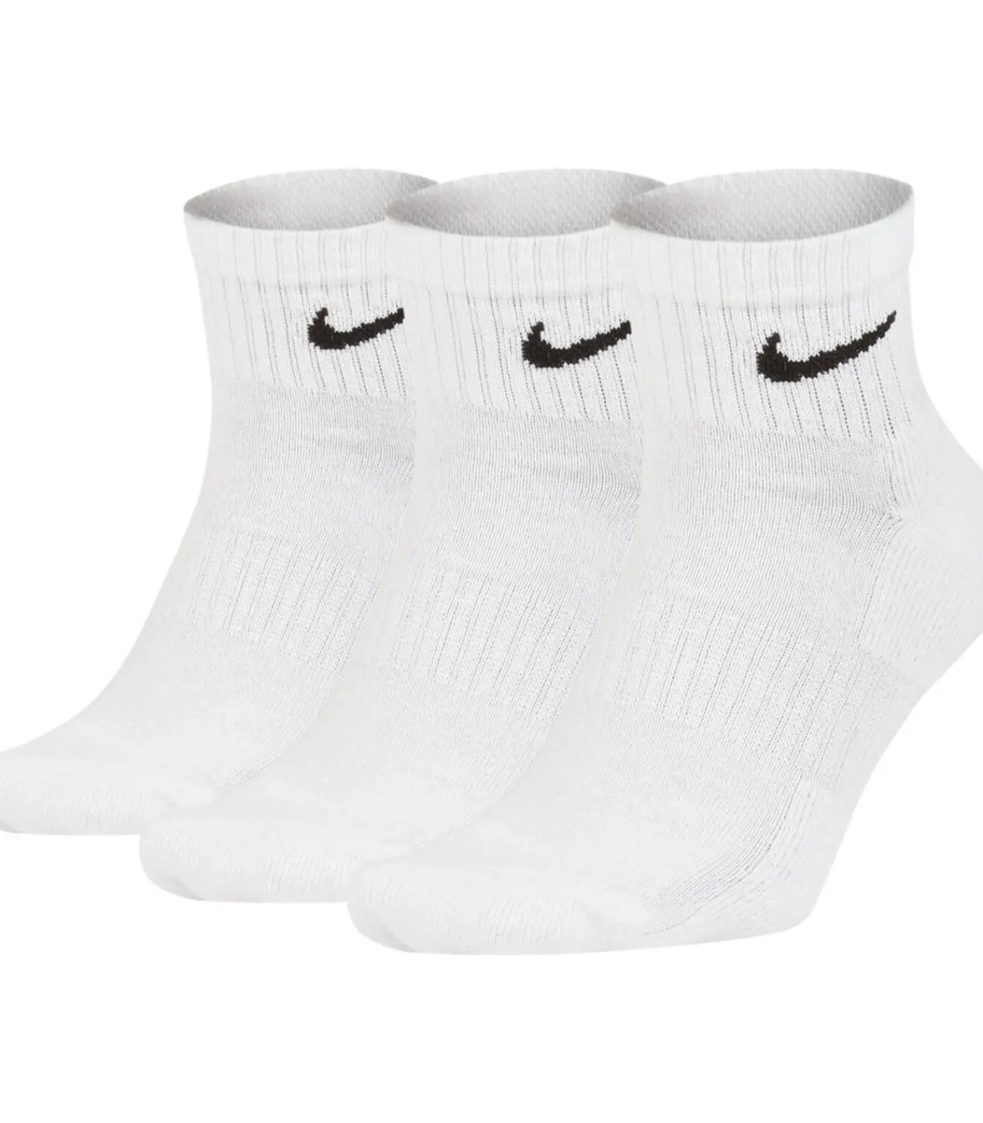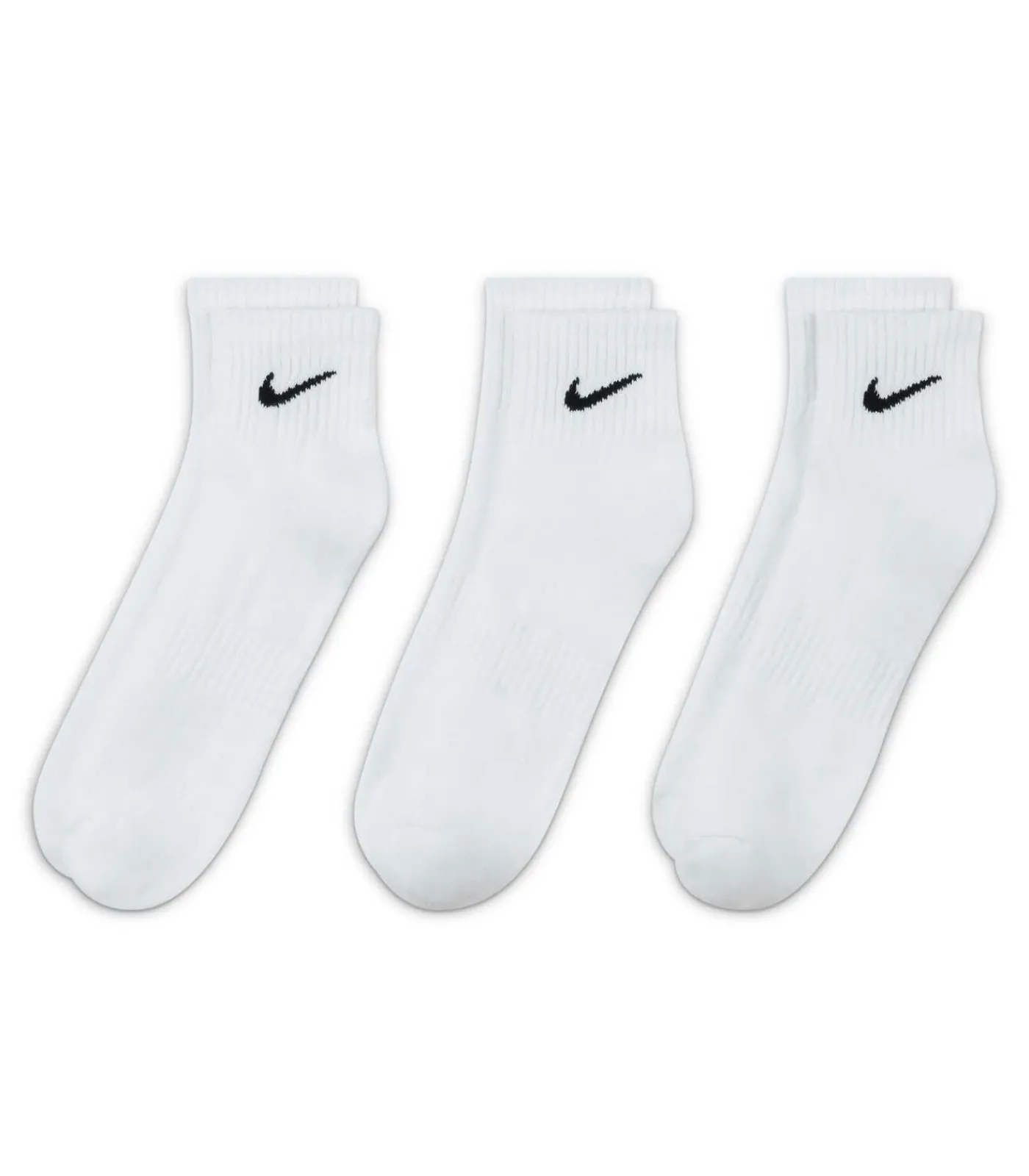 Sokken voor dames en heren van het merk Nike in een praktisch 3–pack. Sportsokken met een gedempte zool en Dry–Fit technologie. Effen sokken met het merklogo op de rand van de sok. Aangenaam dagelijks comfort.