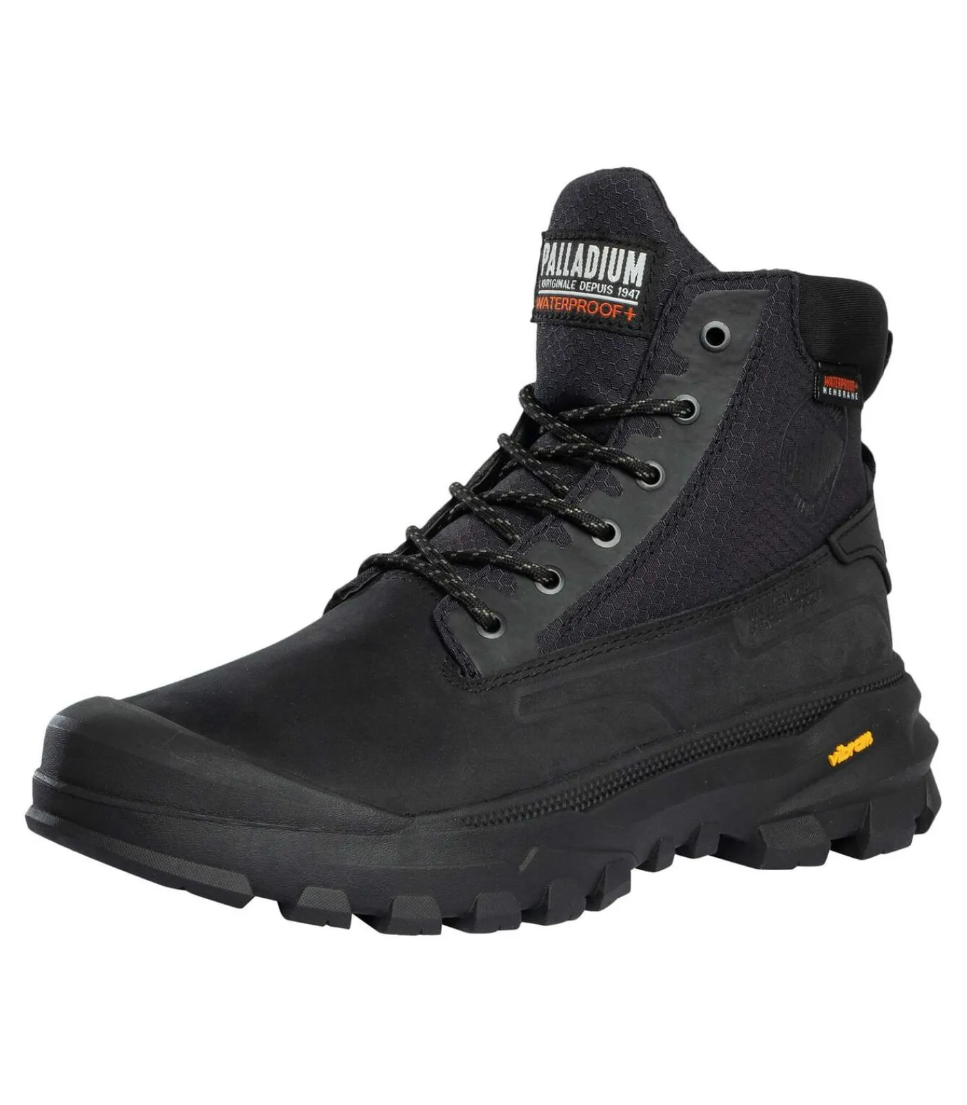 Palladium introduceert de Pallarider SC WP laarzen in het zwart: robuust, waterdicht en gemaakt om lang mee te gaan. Uitgerust met een Vibram–buitenzool voor uitzonderlijke grip en duurzaamheid, garanderen ze stabiliteit onder alle omstandigheden. De gewatteerde boord verbetert het comfort en het waterdichte plus–membraan garandeert droogheid en ademend vermogen. Afgewerkt met het kenmerkende Palladium–merk op de zijkant en tong, belichamen deze laarzen de toewijding van het merk aan robuuste prestaties en een eigentijds design, perfect voor zowel stedelijke als outdooravonturen.