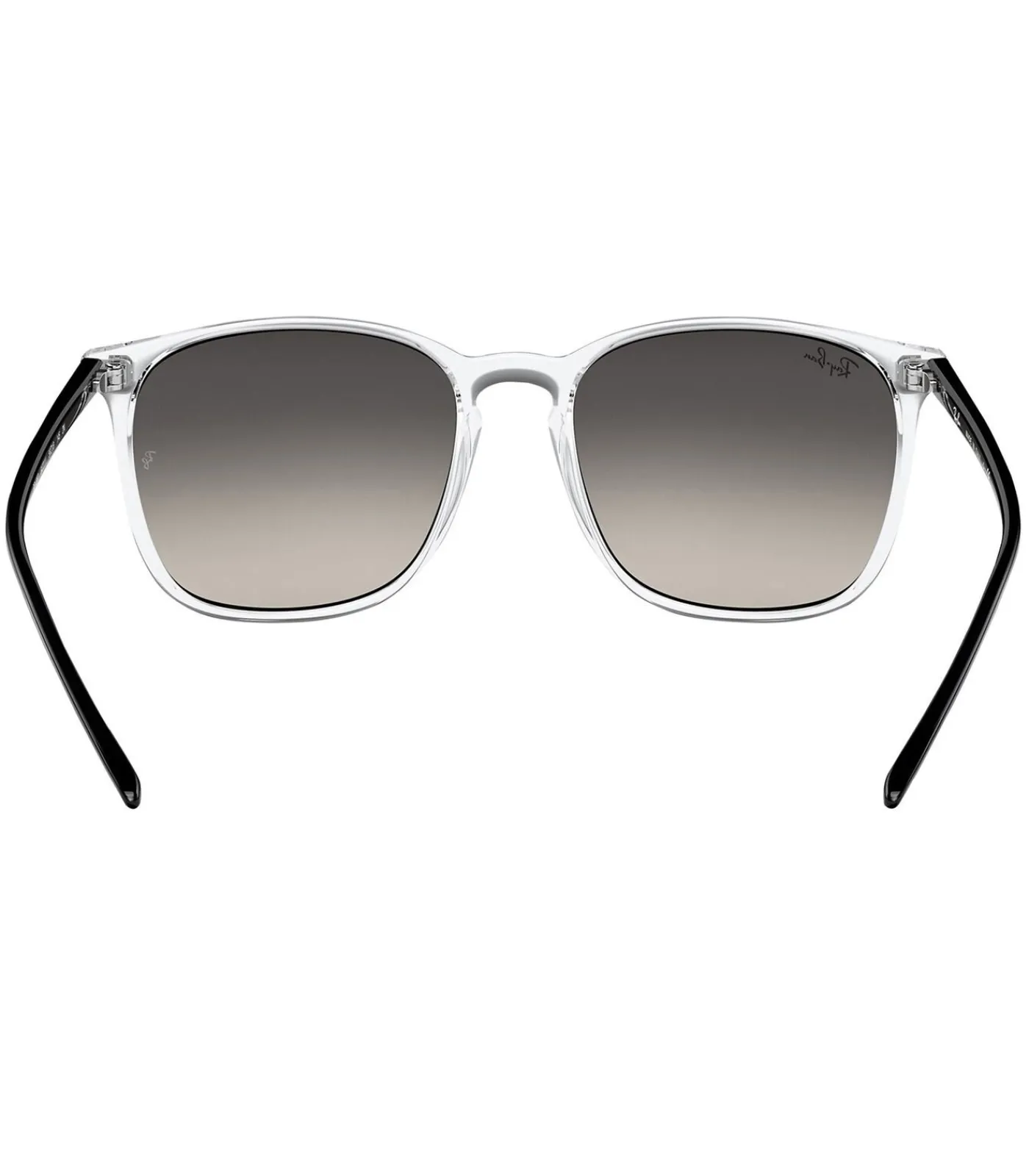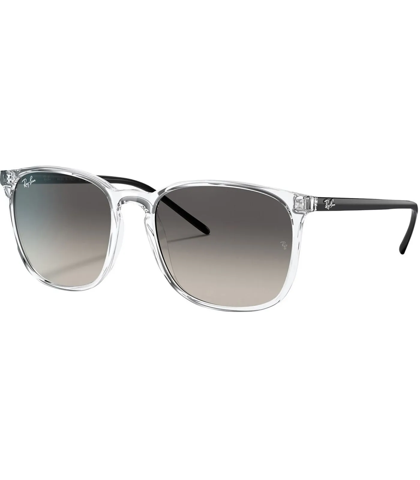 De vierkante transparante zonnebril van Ray–Ban wordt geleverd in de kleur Grey Gradient en heeft een gradiëntlens. Deze zonnebril is voorzien van een merk op het frame en de lens en wordt geleverd met een harde etui.