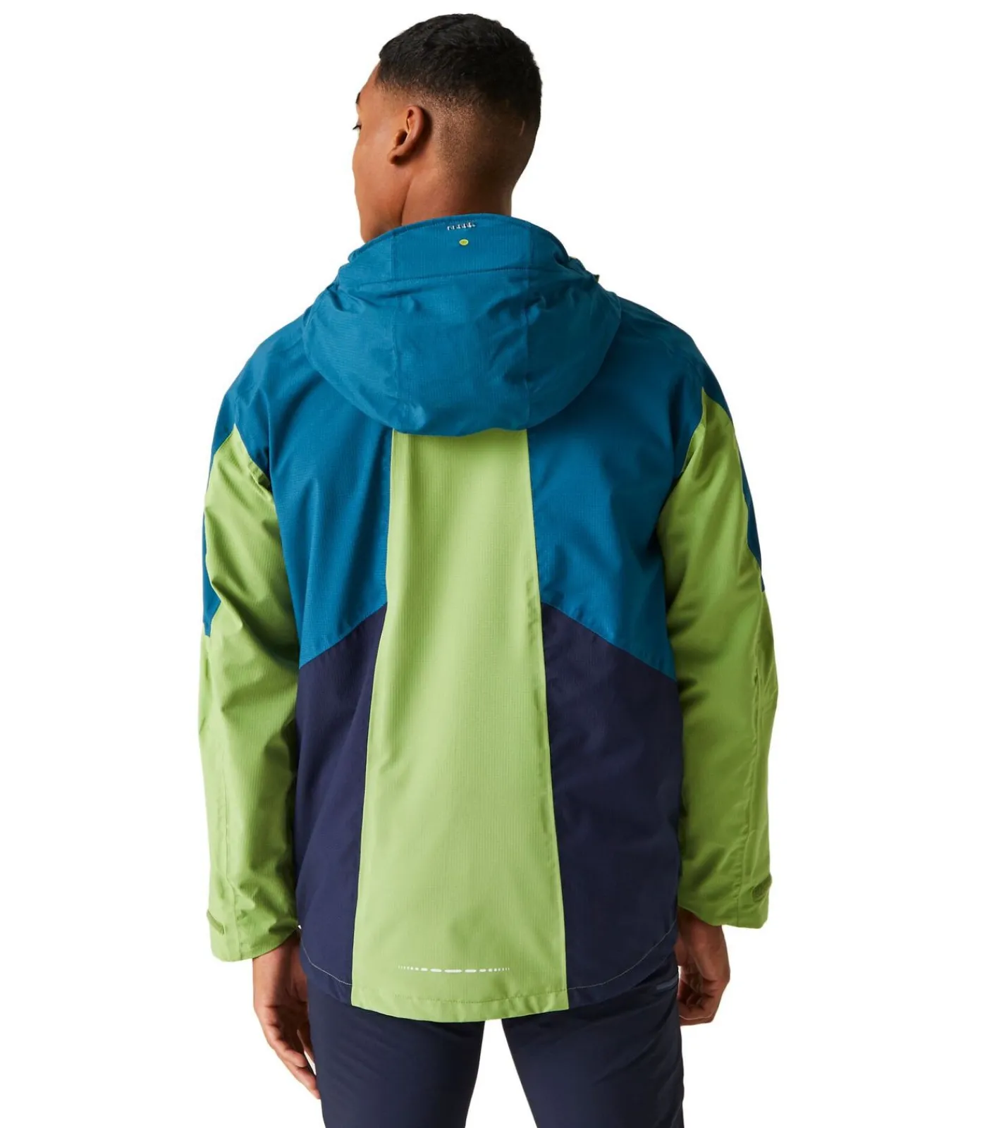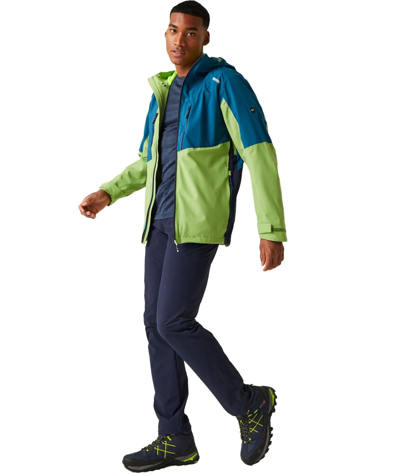 De Regatta Men’s Raddick II Waterproof Jacket is een kledingstuk van polyester met een taffeta voering. Het heeft contrasterende panelen en een logo–ontwerp en is voorzien van ademende, Brite Lite Torch Technology, HighTec Stretch, Isotex 15000, lichtgewicht, ripstop en waterdichte stoftechnologieën. De jas heeft een capuchon bij de hals met een verborgen verstelknoop, een doorgegroeide capuchon en een peaked design. Het jack heeft een ritsbeschermer aan de binnenkant en getapete naden voor extra bescherming. Het jack met lange mouwen heeft twee steekzakken, een binnenzak met ritsen en een volledige ritssluiting. Dit jack heeft een waterdichtheid van 10000g/m²/24 uur, werkt op AAA–batterijen en is gemaakt van gerecycled materiaal, wat de duurzaamheid bevordert.