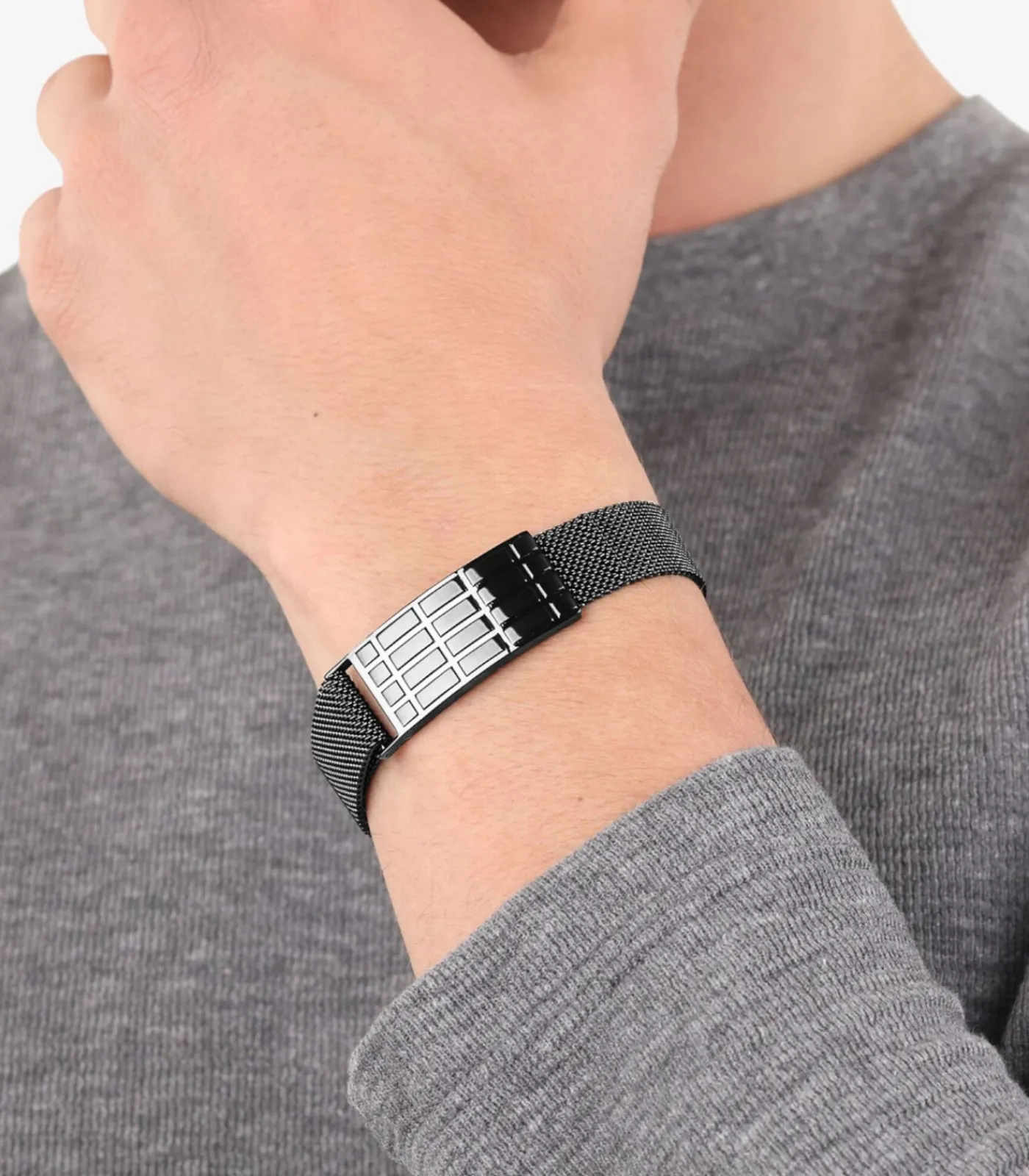 Deze armband voor mannen is de perfecte metgezel voor elke dag. De armband voor heren is gemaakt van hoogwaardig roestvrij staal en is 26 cm lang. Het sieraad heeft een hangerlengte van 35,5 mm. De magnetische sluiting zorgt voor eenvoudig en ongecompliceerd gebruik. Deze sieradencreatie wordt geleverd in een aantrekkelijke verpakking die perfect is om te bewaren of om cadeau te geven.