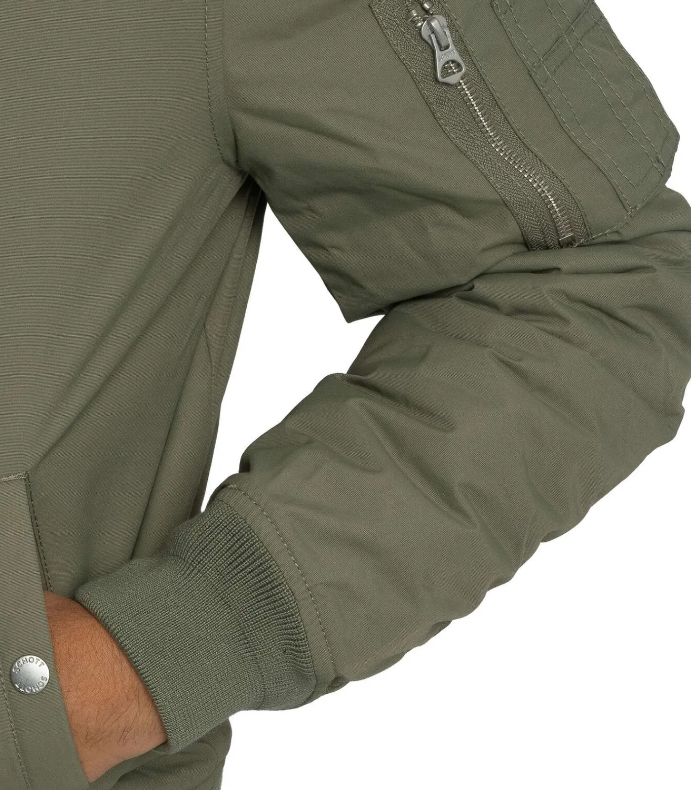 Schott presenteert het Airkraft2 Bomberjack in de kleur Sage/Beige, ontworpen met oog voor zowel functionaliteit als detail. Merkknopen en borduursel op de borst benadrukken Schotts erfgoed, terwijl de zakken met knoopjes veilige opbergmogelijkheden bieden. Een afneembare bontkraag maakt personalisatie mogelijk en elastische manchetten en zoom houden warmte vast. Functionele elementen zoals het ritsvak op de mouw en het binnenvak met rits zorgen voor extra gemak. Robuust en stijlvol, het Schott Airkraft2 Bomberjack is een ideaal bovenkledingstuk dat een traditioneel design combineert met eigentijdse draagbaarheid.