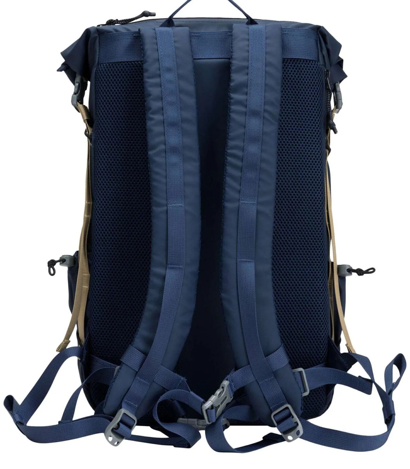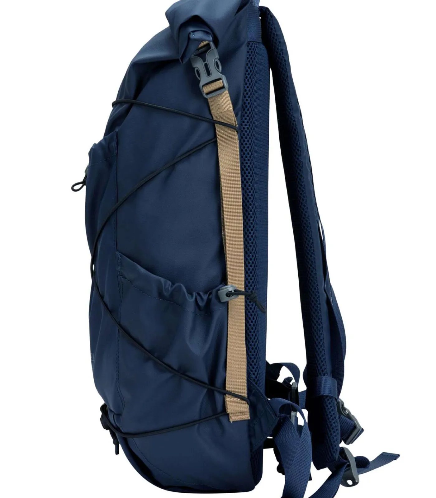 De Elliker 24/35L Buckden Roll Top Rugzak in marineblauw biedt flexibele opbergmogelijkheden met een oprolbaar ontwerp en clips om de maat aan te passen. Hij is voorzien van een vak voor een waterfles, gevoerde schouderbanden voor comfort en een binnenvak voor een laptop om apparaten te beschermen. Extra binnenvakken met rits en een zijvak met rits zorgen voor een veilige organisatie. Deze Elliker rugzak is gemaakt voor reizen, woon–werkverkeer of vrije tijd en past zich gemakkelijk aan verschillende behoeften aan. Afmetingen: H 47/70 cm x B 30 cm x D 15 cm. Inhoud: 24/35 l.