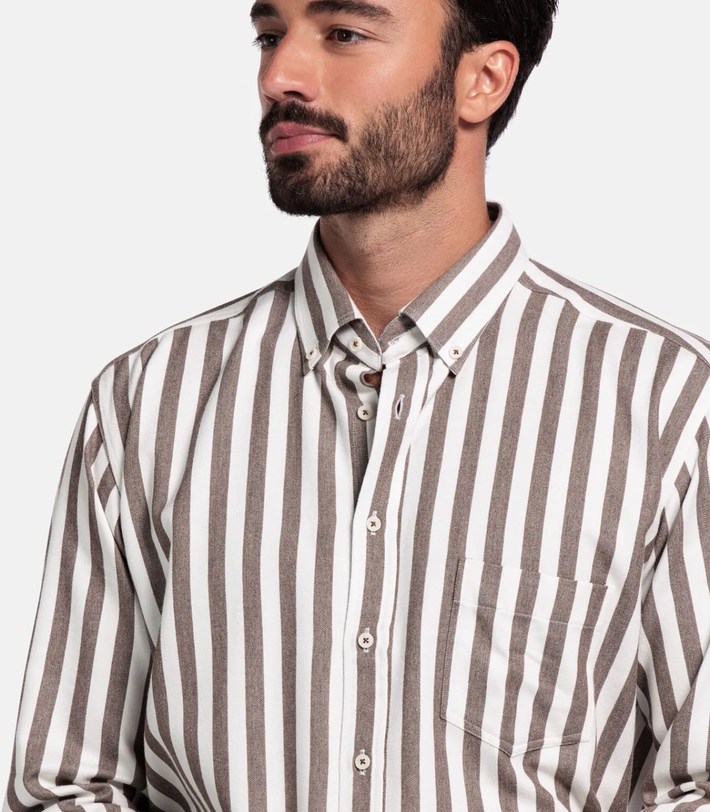 Dit overhemd met lange mouwen is gemaakt van zacht geborsteld satijnkatoen en uitgevoerd in een regular fit. De subtiele streepstructuur geeft het model een verfijnde, moderne uitstraling, terwijl de button–downkraag zorgt voor een casual, verzorgde look. Het ademende katoen voelt soepel aan op de huid en biedt optimaal draagcomfort – ideaal voor zowel werk als vrije tijd. Artikelnummer 527103–80