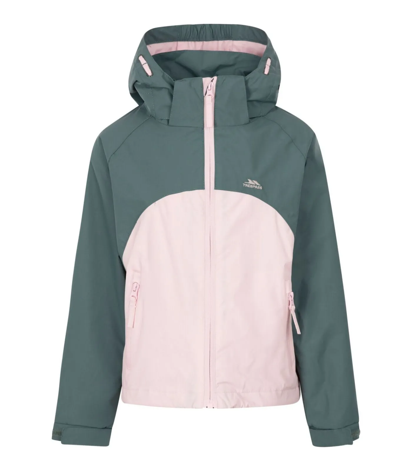 Trespass Meisjes Capture TP50 Waterdichte Jas Het buitenmateriaal van deze jas is 100% polyamide. De voering is 100% polyester. De buitenstof heeft een polyurethaan coating en is geweven. Voor de voering is een tricot stof gebruikt. Het ontwerp heeft contrasterende kleuren en logo’s. Het jack is niet gewatteerd en heeft getapete naden. De stof is waterdicht, winddicht en heeft een TP50–classificatie. De manchet heeft een verstelbare polsband en een drukknoopsluiting. De mouwen zijn lang. De hals heeft een opstaande kraag. De capuchon is afneembaar. Aan de voorkant zitten twee zakken met rits. De jas sluit met een volledige rits. Het heeft een waterdichtheid van 3000mm.