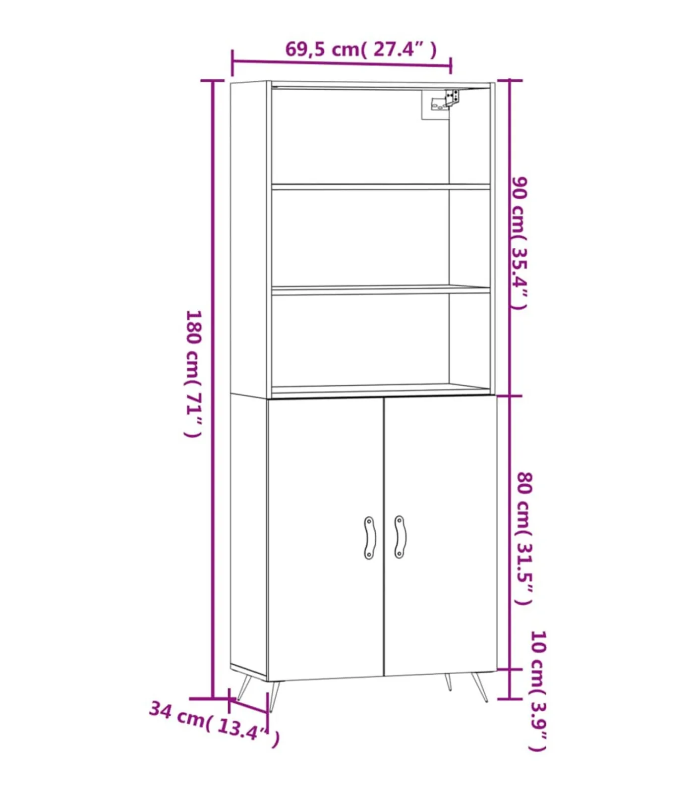 Afmetingen blad hoge kast: 69,5 x 32,5 x 90 cm (B x D x H)