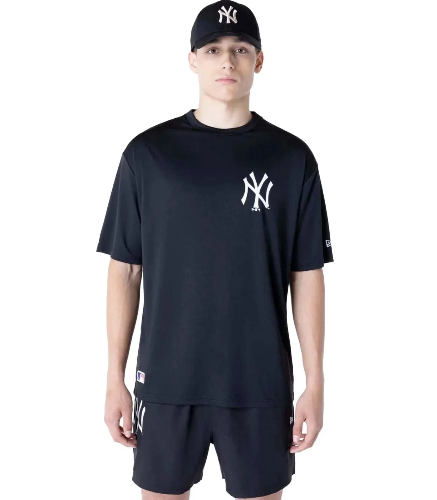 Kleur: Zwart Samenstelling: 100% Polyester Mouwen: Kort Halslijn: Ronde hals Pasvorm: Normaal Details: T–shirt met het logo van de New York Yankees op de linkerborst en de New Era–vlag geborduurd op de linkermouw. Gebruik: Ideaal voor een sportieve en urban look, perfect voor in je vrije tijd en om je team stijlvol aan te moedigen.
