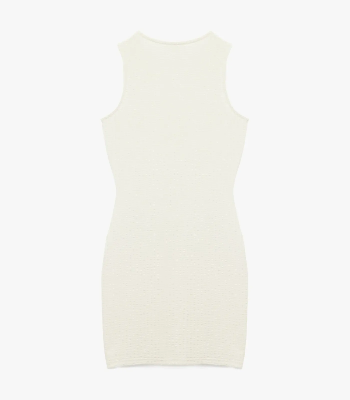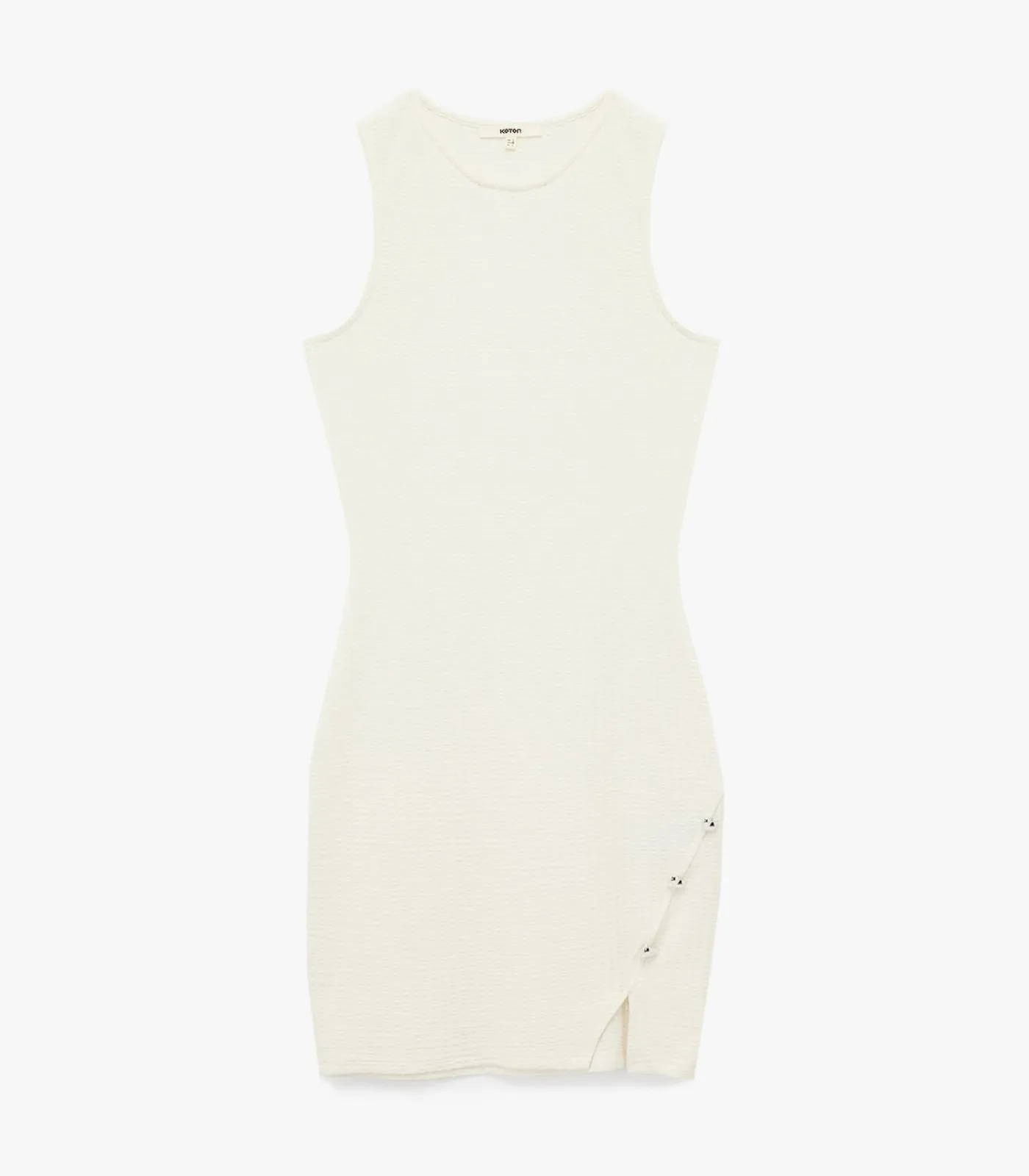Koton Slim fit asymmetric cut accessory detail sleeveless crew neck mini bodycon dress.