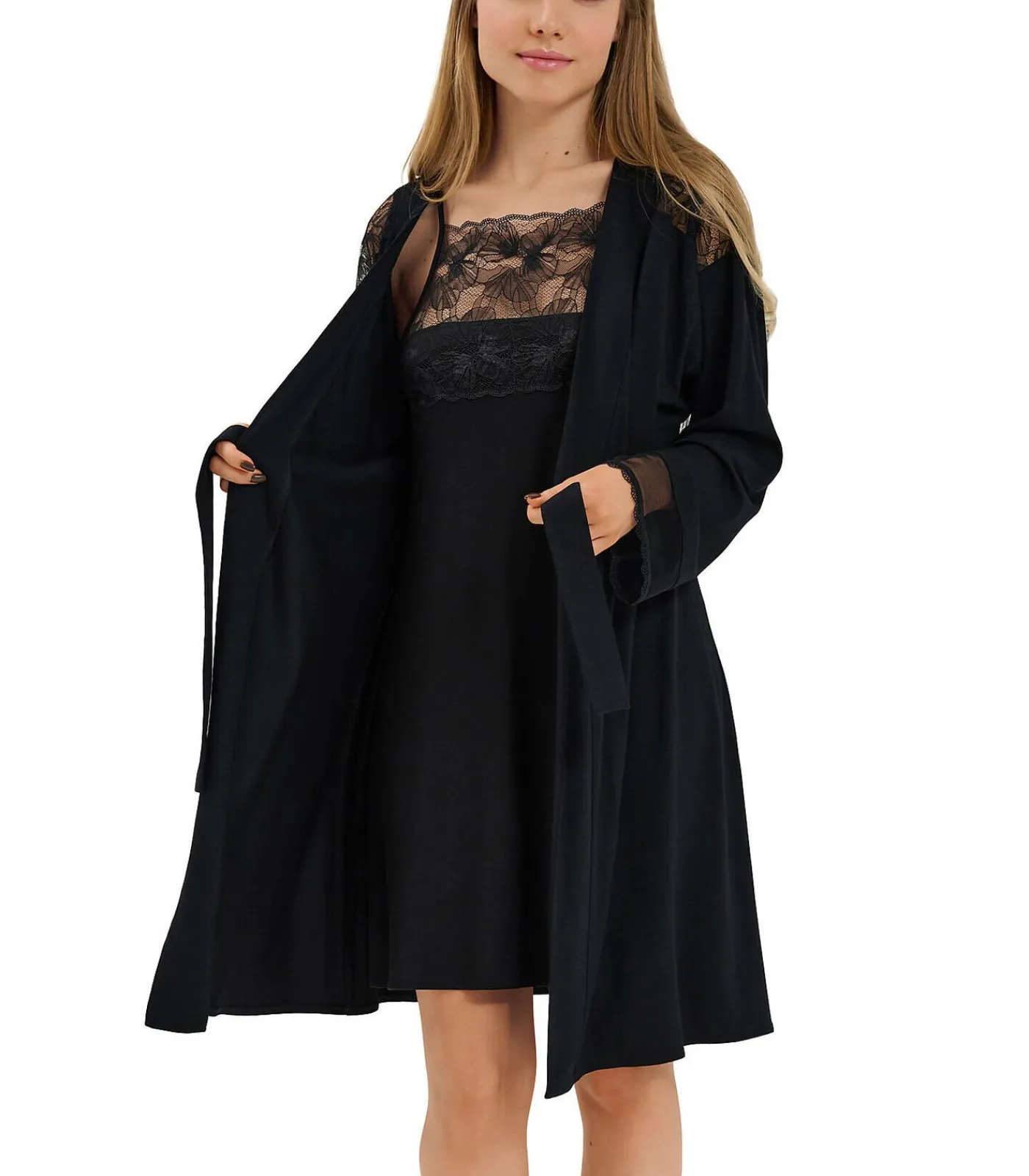 Lengte ca. 95 cm. Een verleidelijk en vooral elegant stuk, gemaakt van zacht modal met elastaan, kant en een transparant gaas dat het lichter en dus verleidelijker maakt. De kleur en stijl zijn perfect, in gedurfd, sexy zwart of feestelijk, verleidelijk rood.[Undress wordt alleen verkocht. Babydoll, schoenen en andere accessoires die het model op de foto’s draagt zijn niet inbegrepen].