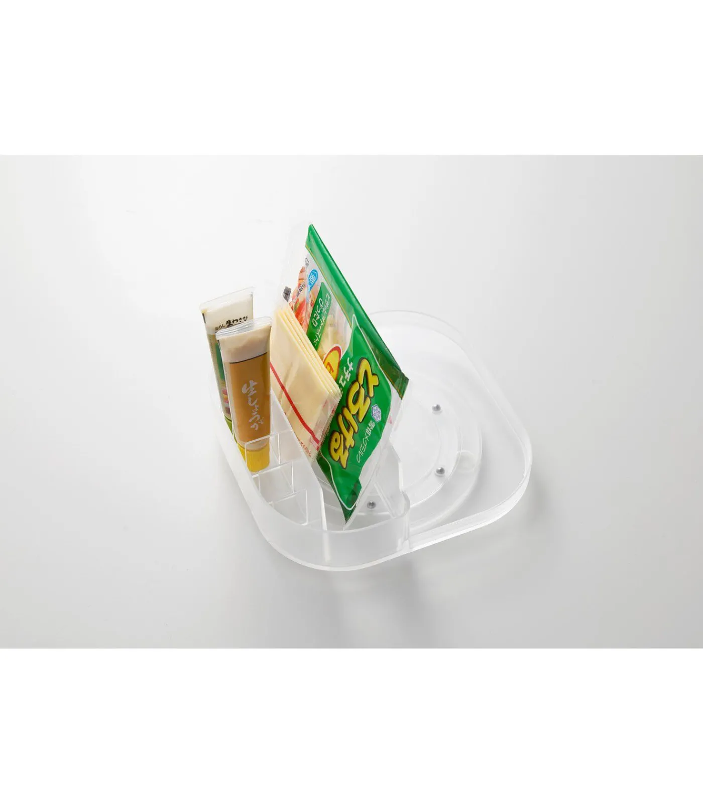 Dit ruimtebesparende opbergbakje van Yamazaki met compartimenten is ontworpen om de beschikbare ruimte in een koelkast of badkamerkast optimaal te benutten. Dankzij de draaifunctie zijn ook producten die normaal gesproken lastig bereikbaar zijn eenvoudig toegankelijk. De rotatie maakt het mogelijk om items van alle kanten te pakken en de compartimenten zorgen ervoor dat alles overzichtelijk en binnen handbereik blijft.