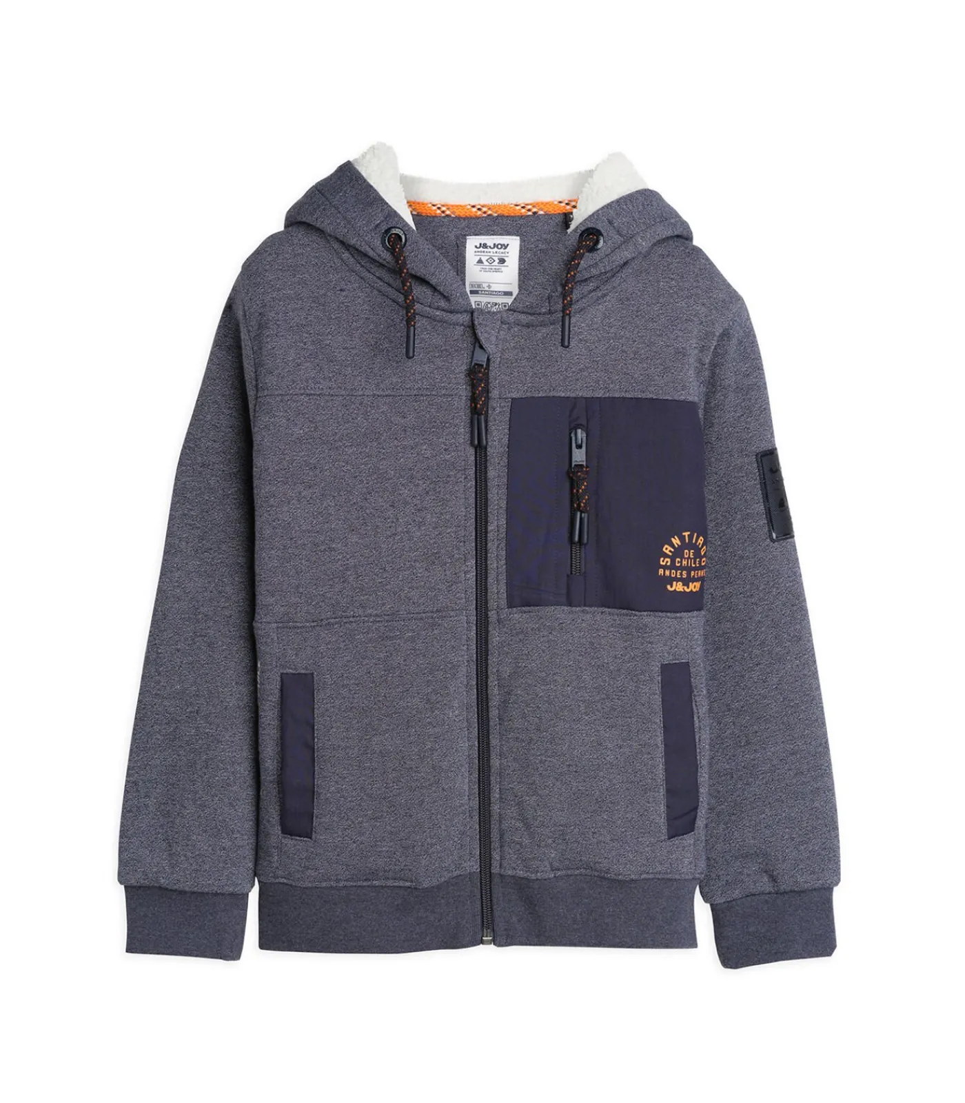 Geef je zoon een trendy en comfortabele look met deze Santiago–sweater met rits. Gemaakt van een mix van 65% polyester en 35% katoen, biedt deze blauwe sweater zowel zachtheid als duurzaamheid. De normale pasvorm en capuchon met contrasterend trekkoord geven hem een moderne, relaxte touch. De geribbelde stretchranden en manchetten zorgen voor een perfecte pasvorm, terwijl de lange mouwen en een dubbele kangoeroezak aan de voorkant voor extra functionaliteit zorgen. Het geborduurde J&JOY–logo op het hart geeft deze effen sweater een vleugje authenticiteit. Bestel nu en trakteer je zoon op een kwaliteitsitem dat hem warm en stijlvol houdt.