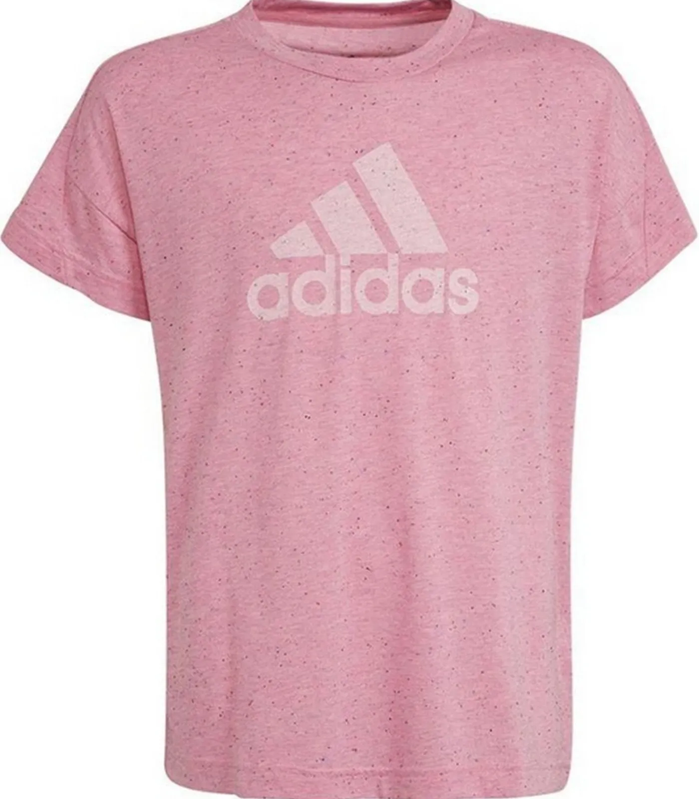 Adidas Badge of Sport roze T–shirt gemaakt van katoen. Het ontwerp is eenvoudig met de logomerk van Adidas op het voorzijde. De hals is rond en de mouwen zijn kort. Het T–shirt is geschikt om los te dragen. Sizes: 12 jaar – 30,5 inch, 14 jaar – 34 inch, 15 jaar – 35 inch.