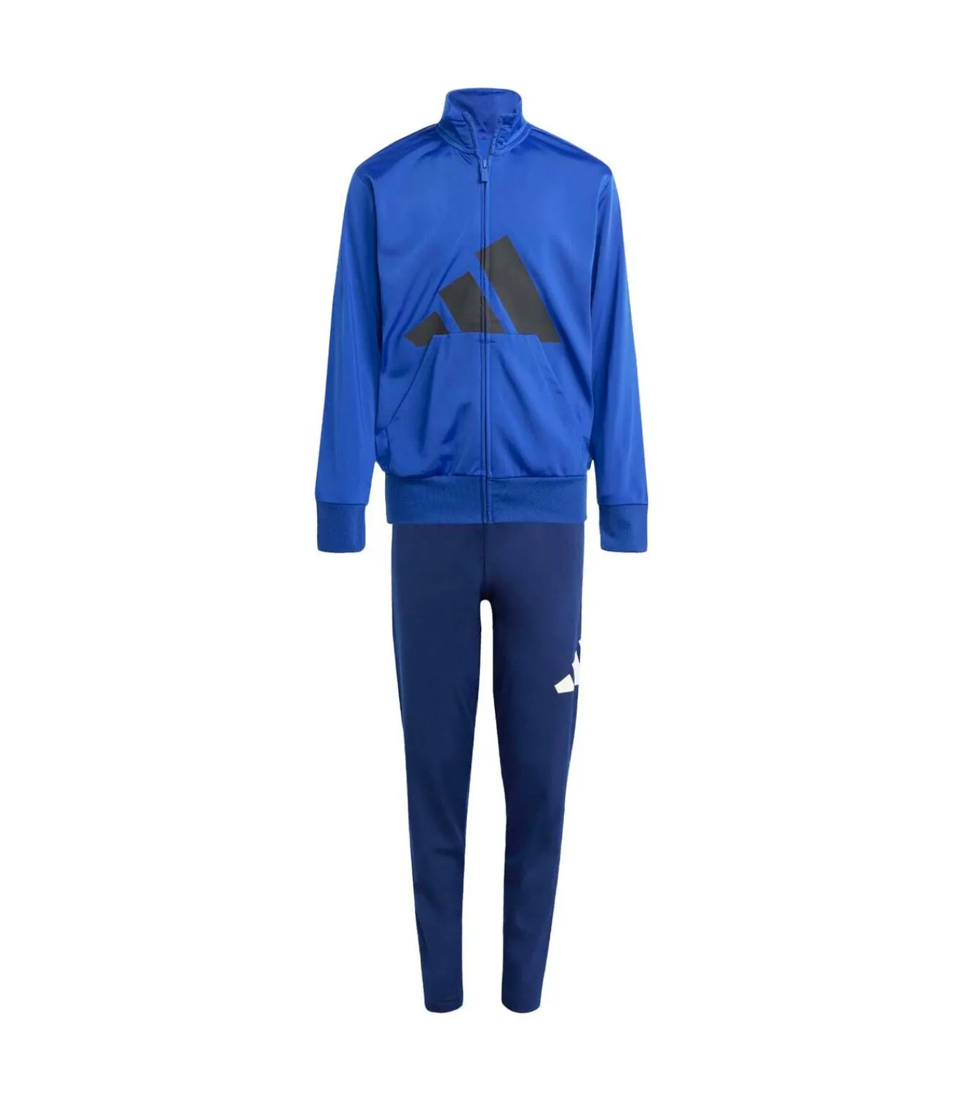 * Kleur: Koningsblauw / Zwart * Mouwen: Lang * Pasvorm: Normaal * Sluiting: Rits (jas), Trekkoord in de taille (broek) * Details: Vochtafvoerende CLIMACOOL–technologie, zachte en ademende tricotstof, 3 Bar–logo op borst en been, snel drogend * Duurzaamheid: Gemaakt van ten minste 70% gerecyclede en hernieuwbare materialen om afval en afhankelijkheid van beperkte hulpbronnen te verminderen * Wassen: Machinewasbaar * Gebruik: Ideaal voor sportactiviteiten en momenten van ontspanning, perfect voor jonge atleten die op zoek zijn naar comfort en stijl