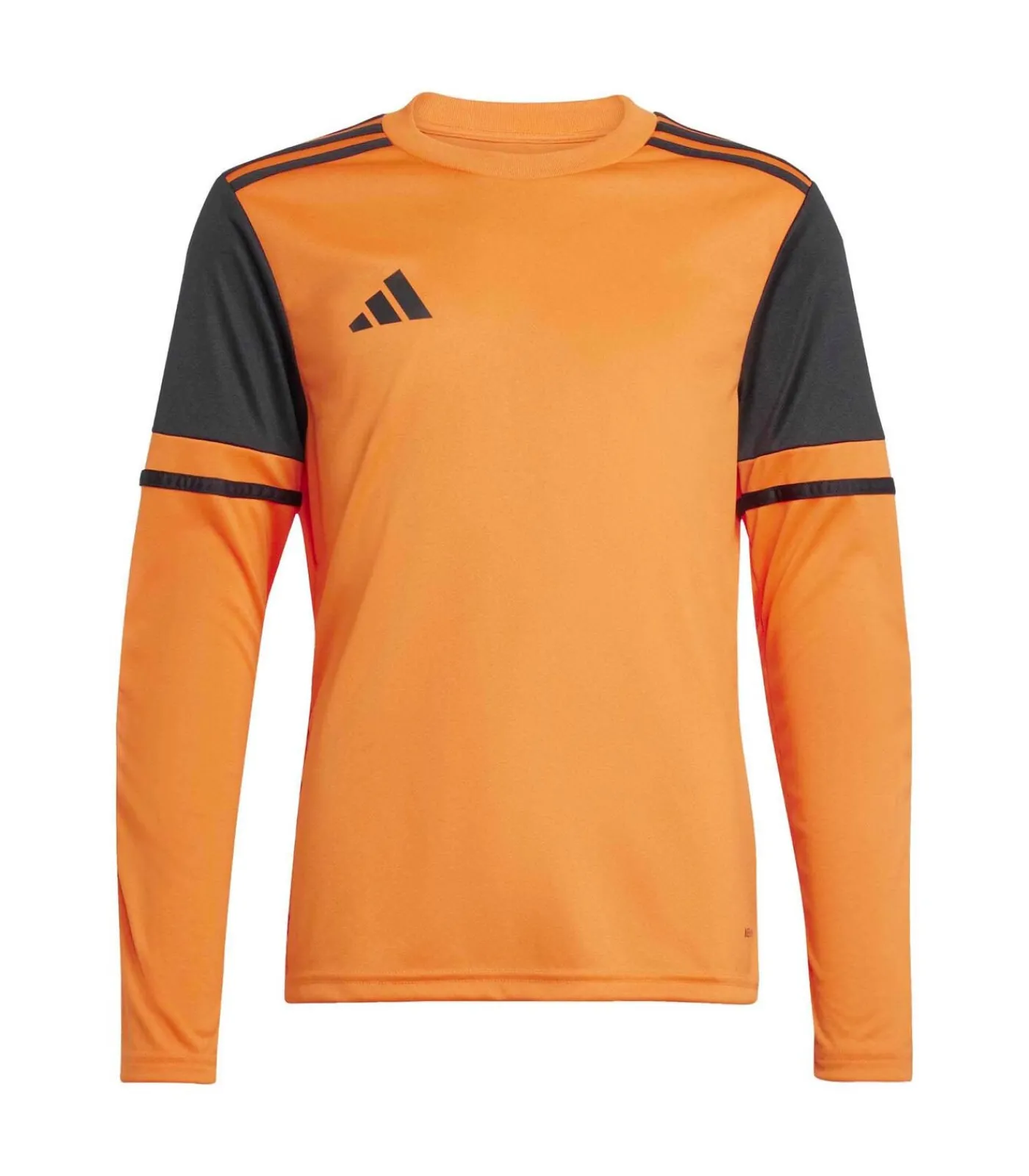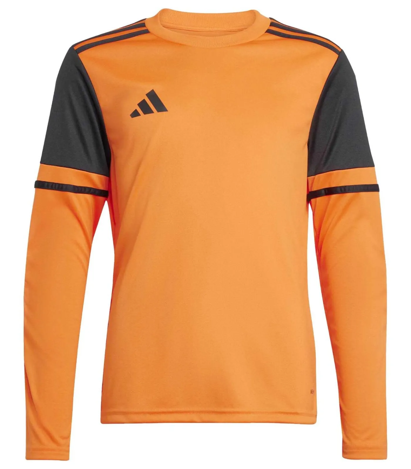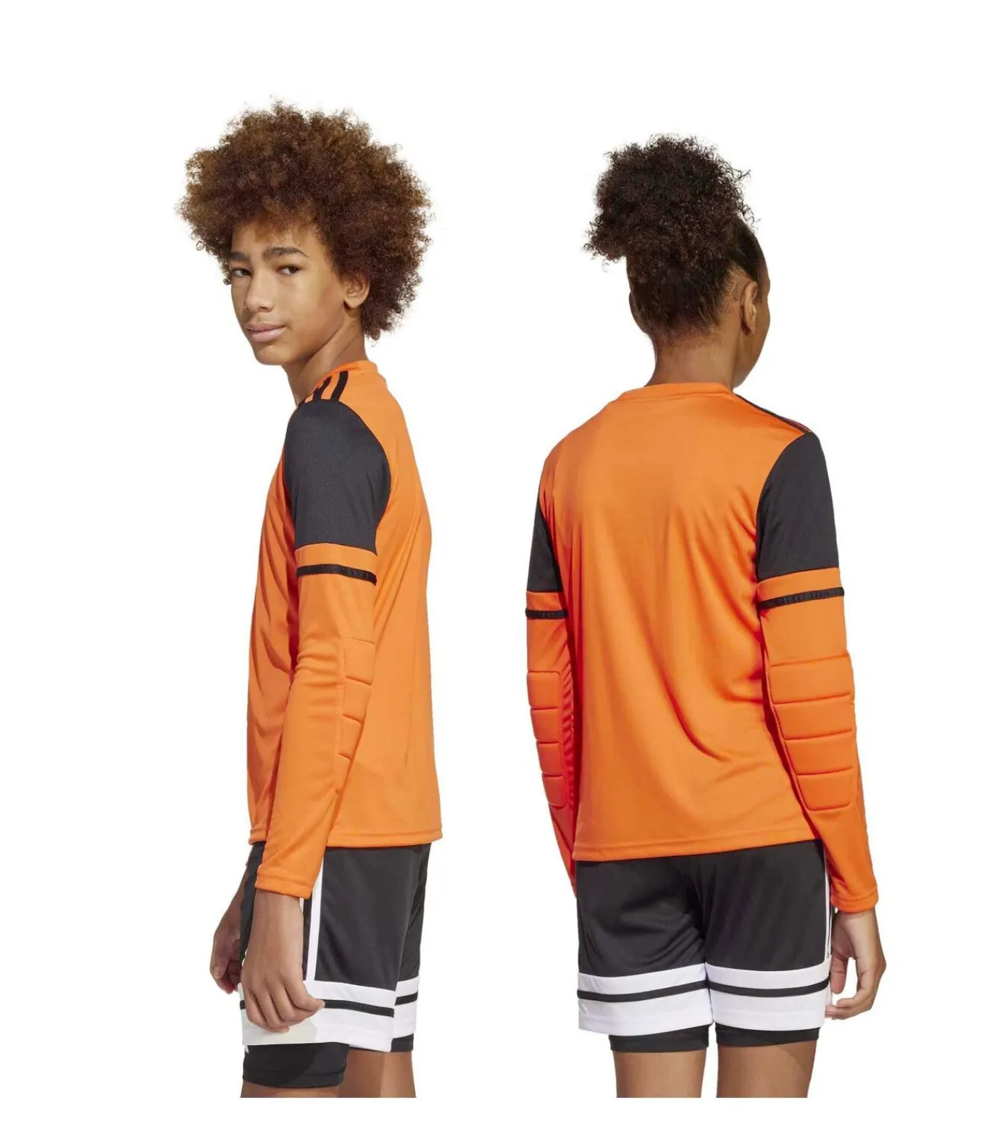 Kleur: Semi Impact Oranje / Zwart Samenstelling: 100% gerecycled polyester Mouwen: Lang Halslijn: Ronde hals Pasvorm: Normaal Details: AEROREADY–technologie, gewatteerde ellebogen, geborduurd logo, 3–Stripes aangebracht Duurzaamheid: Volledig gemaakt van gerecyclede materialen om afval en het gebruik van niet–hernieuwbare bronnen te verminderen Gebruik: Perfect voor jonge keepers die op zoek zijn naar bescherming en comfort tijdens wedstrijden en trainingen