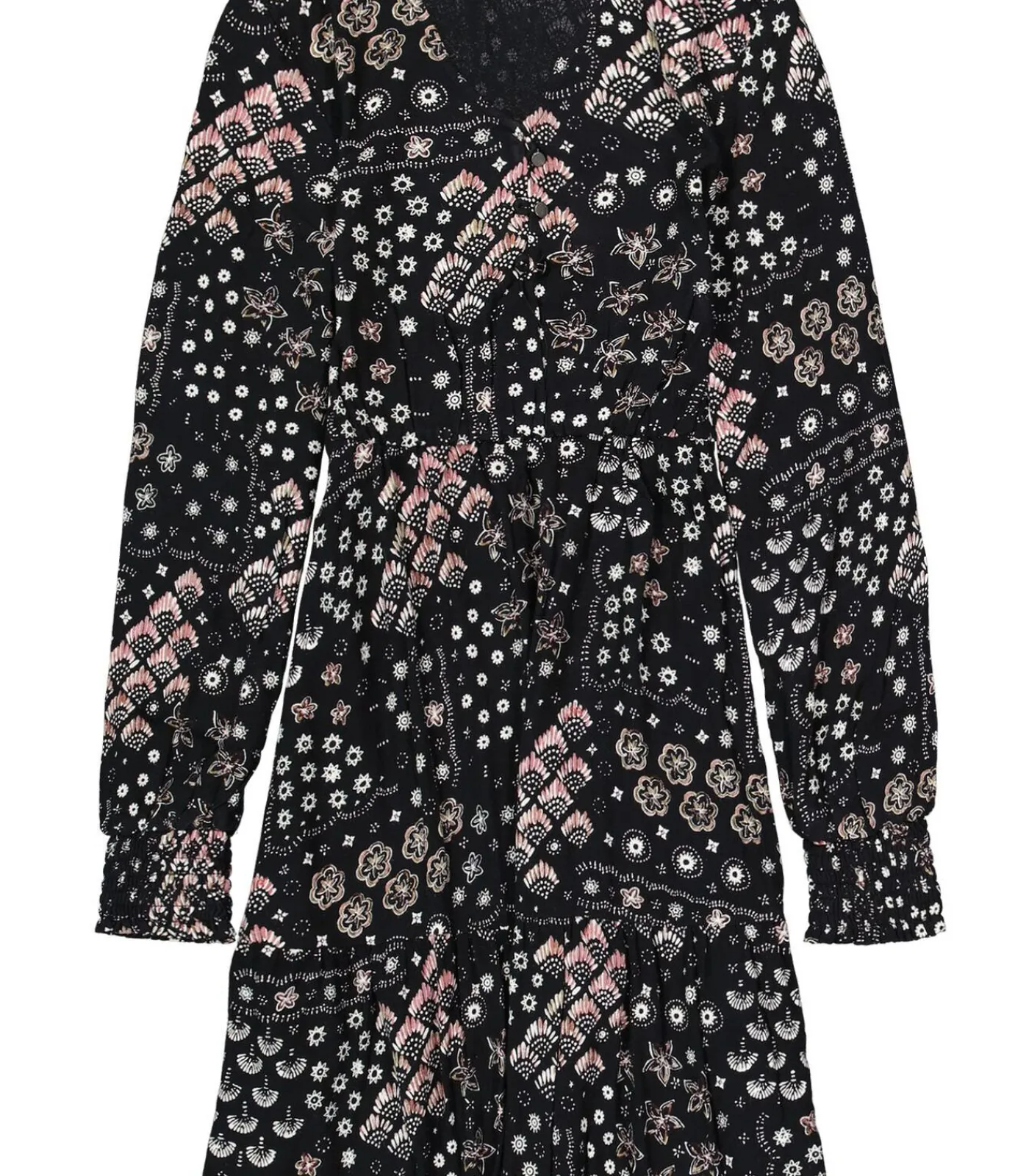 Crêpe jurk met allover print.Creëer een trendy look met dit item.Deze jurk heeft lange mouwen, een V–hals en een regular fit. Dit item is gemaakt van 100% viscose.Dit GARCIA kledingstuk is gemaakt met LENZING™ ECOVERO™–vezels.