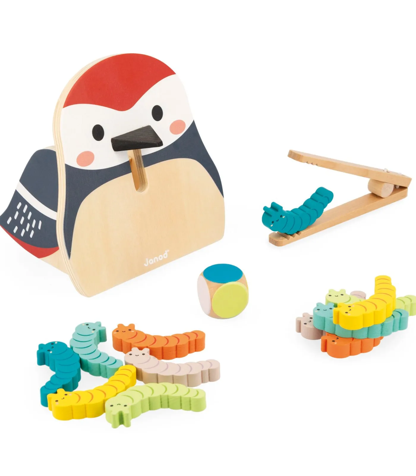 Yum yum! De kleine bonte specht heeft honger. Help hem met het voeden van lekkere rupsen, maar opgelet, hij heeft weinig geduld! Geef als eerste al je rupsen aan hem. Uw kind kan de vogel met behulp van de houten tang voeden door de rups in zijn bek te stoppen die met de kleur op de dobbelsteen overeenstemt. Dit spel bestaat uit een houten vogel, een tang, een dobbelsteen en 12 houten rupsen. Ideaal voor het ontwikkelen van de behendigheid en de fijne motoriek bij uw kind, en het visueel geheugen via het herkennen van kleuren. Speelgoed van FSCTM–hout. Muzikaal speelgoed voor kinderen vanaf 2 jaar.