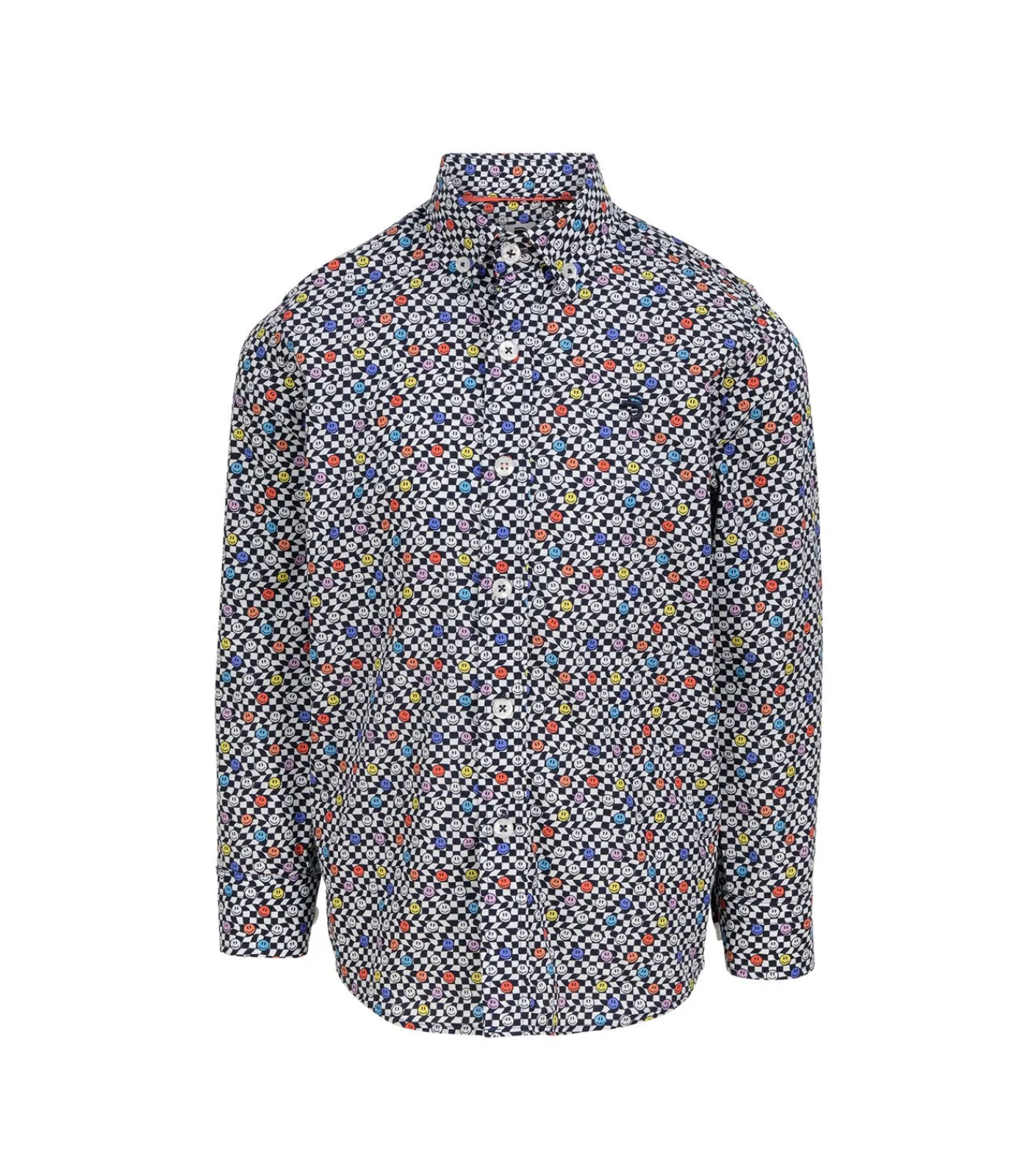Humor en originaliteit definiëren dit shirt met lange helden. Het materiaal is 100% katoen. De snit is recht. De kraag is klassiek met tips met knoop. Het J & Joy –logo is geborduurd op de borst. Bevestig uw stijl met deze “smiley” –print en eigenzinnige print.