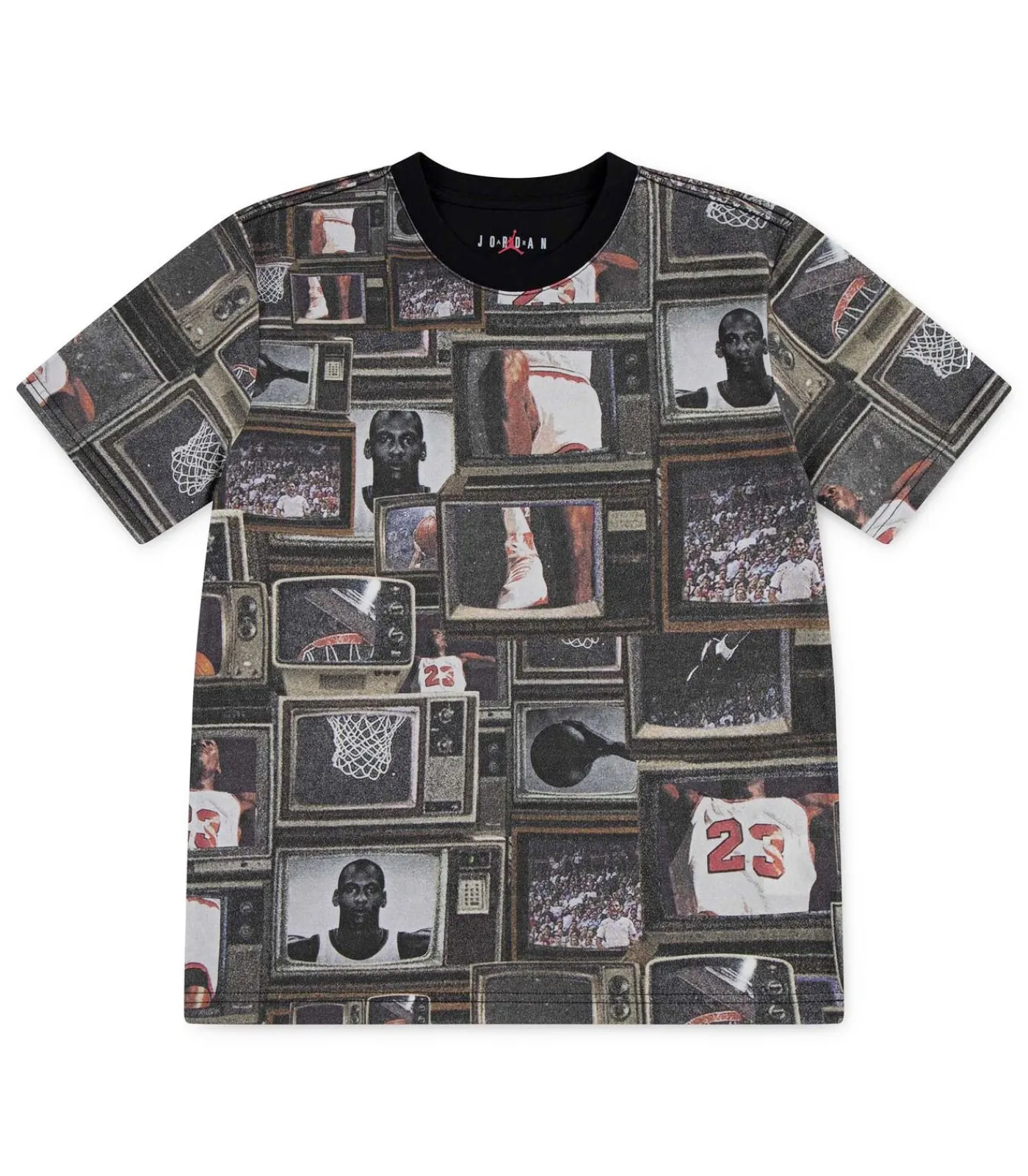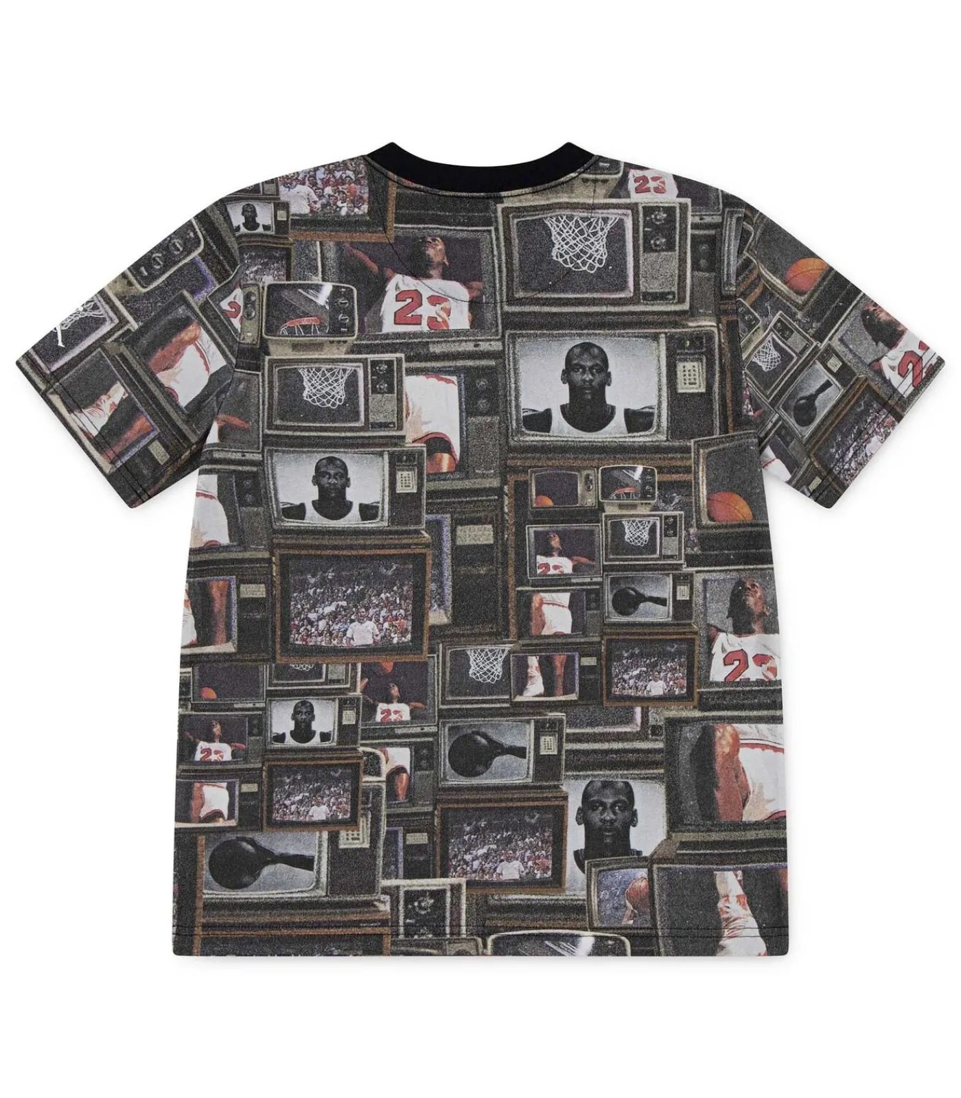 Kleur: Zwart Samenstelling: 60% Katoen, 40% Polyester Mouwen: Kort Halslijn: Ronde Hals Pasvorm: Normale Pasvorm Details: All–over print geïnspireerd door Michael Jordan en de wereld van basketbal Gebruik: Perfect voor jonge sportliefhebbers, ideaal voor school, spelen en vrije tijd met een gedurfde look