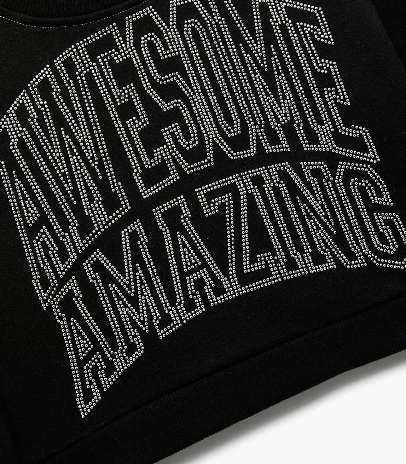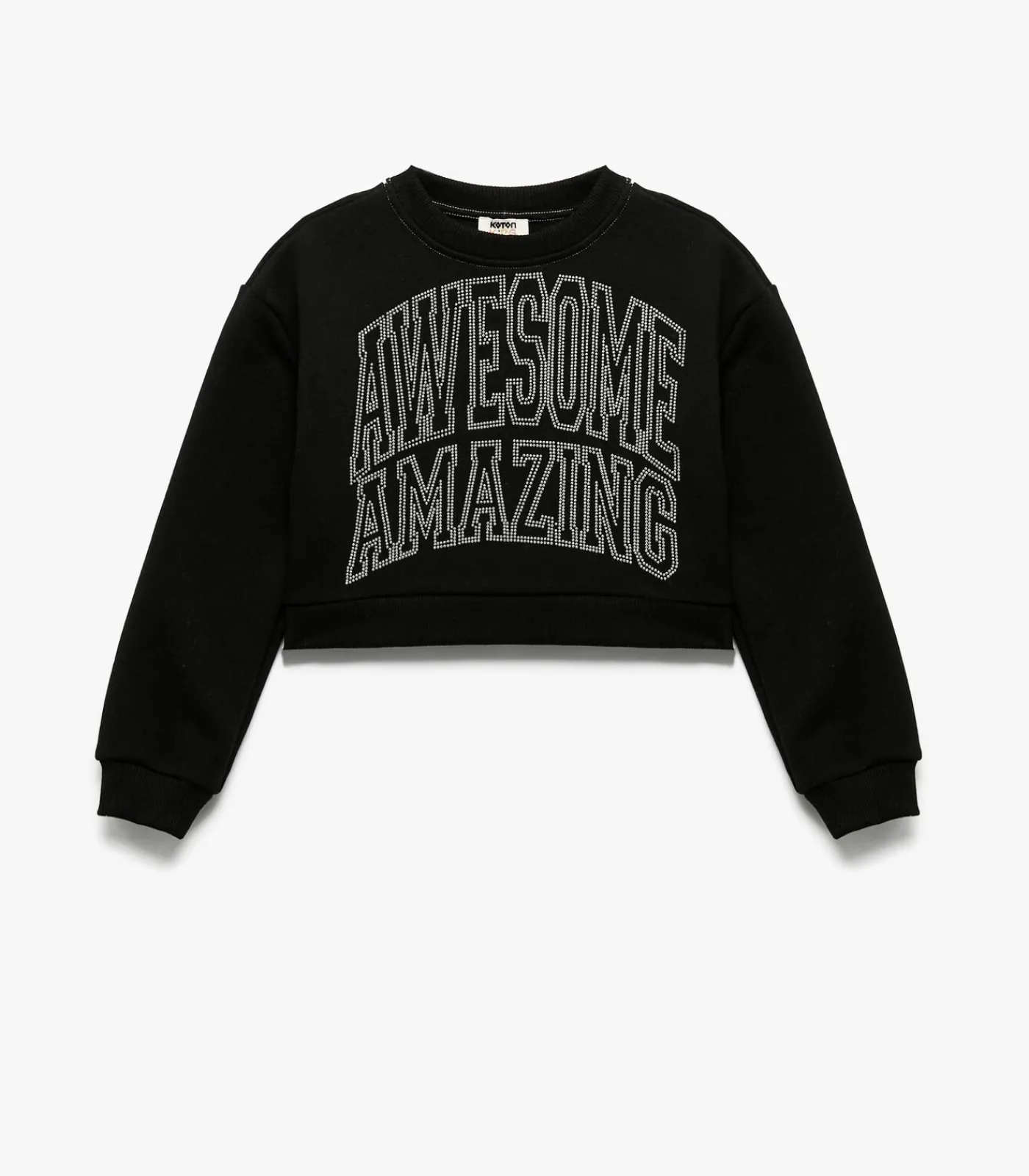 Deze comfortabele zwarte meisjestrui met ronde hals en lange mouwen is perfect voor elke gelegenheid. De trui heeft opvallende stenen details die een leuke uitstraling geven. Ideaal voor dagelijks gebruik en speciale gelegenheden vanwege de veelzijdige pasvorm en stijl.
