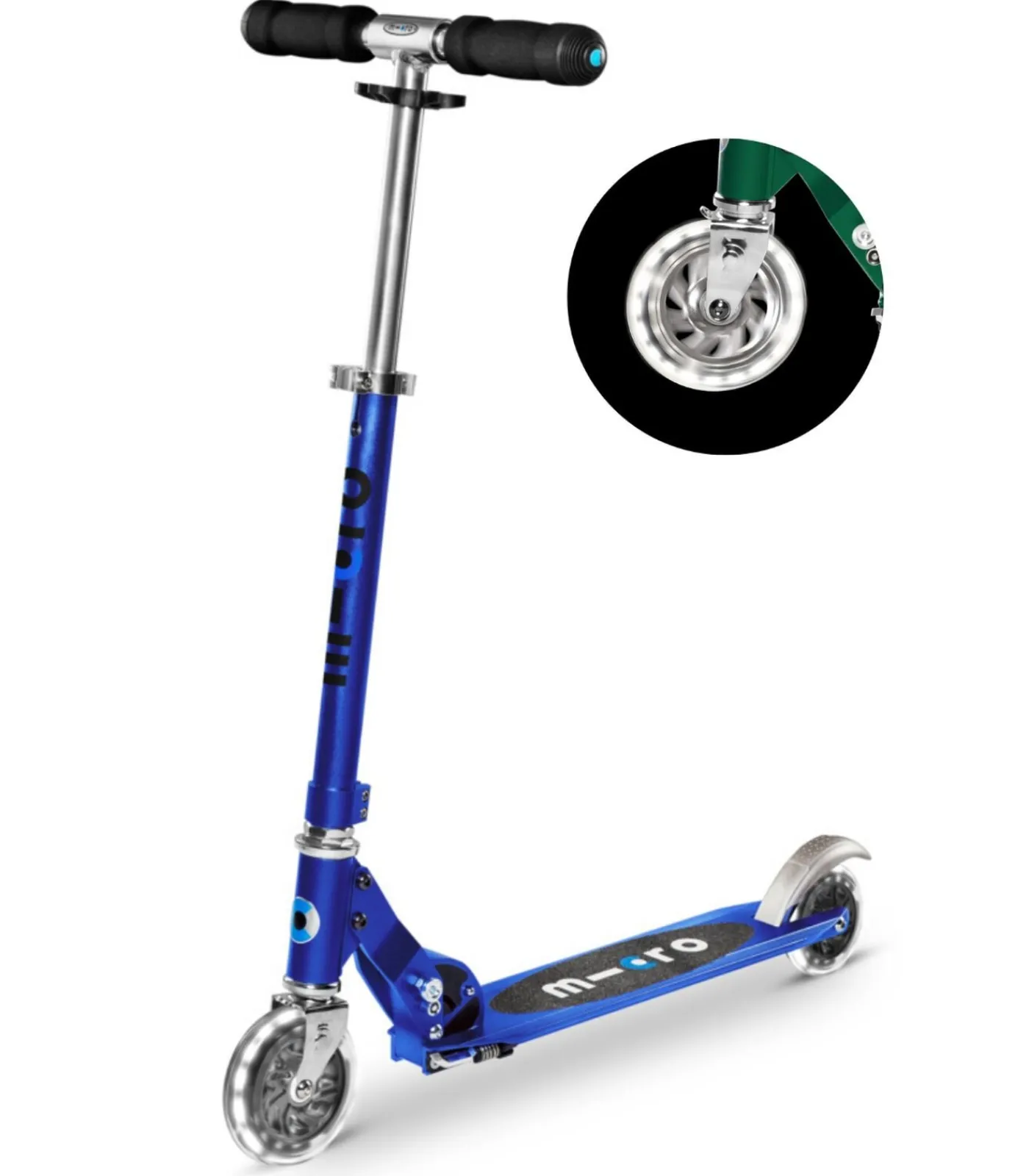 Micro Sprite LED sapphire blueOnze best verkochte 2–wielige step wordt nu ook geleverd met LED–verlichting op de voor– en achterwielen. De slimme LED–technologie gebruikt inductie–energie om de kracht die kinderen creëren terwijl ze steppen. Geen batterijen. Geen gedoe. De wielen lichten wit op, om de donkerste avonden te verlichten en de meest gewone dagen op te fleuren. Kinderen vinden het geweldig. De Sprite stuurt als een fiets en rijdt nagenoeg geruisloos. Of het nu gaat om het opbouwen van snelheid of het nemen van obstakels, kinderen kunnen het gemakkelijk doen dankzij het slimme Zwitserse ontwerp van de Sprite. Met verstelbaar stuur voor jarenlang stepplezier en een lichtgewicht aluminium frame voor ultieme wendbaarheid en duurzaamheid. De voetplaat is van perfect formaat. Deze step munt uit door zijn eenvoud. Hij is veilig inklapbaar en heeft een handige standaard.Extra informatieALL ROUNDER MET LED WIELEN VOOR IEDEREEN DIE WIL GAAN STEPPEN5 jaar +Eenvoudig inklapbaarLicht: 2,8kgDuurzame LED PU wielenstuurhoogte verstelbaarMetalen remStandaard