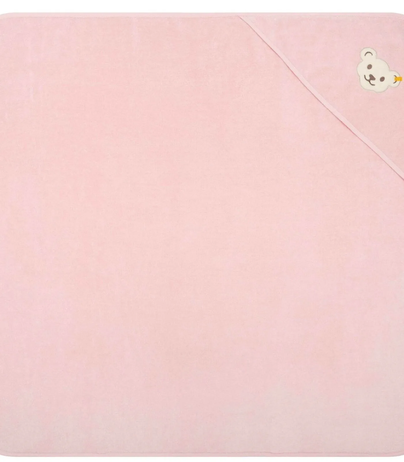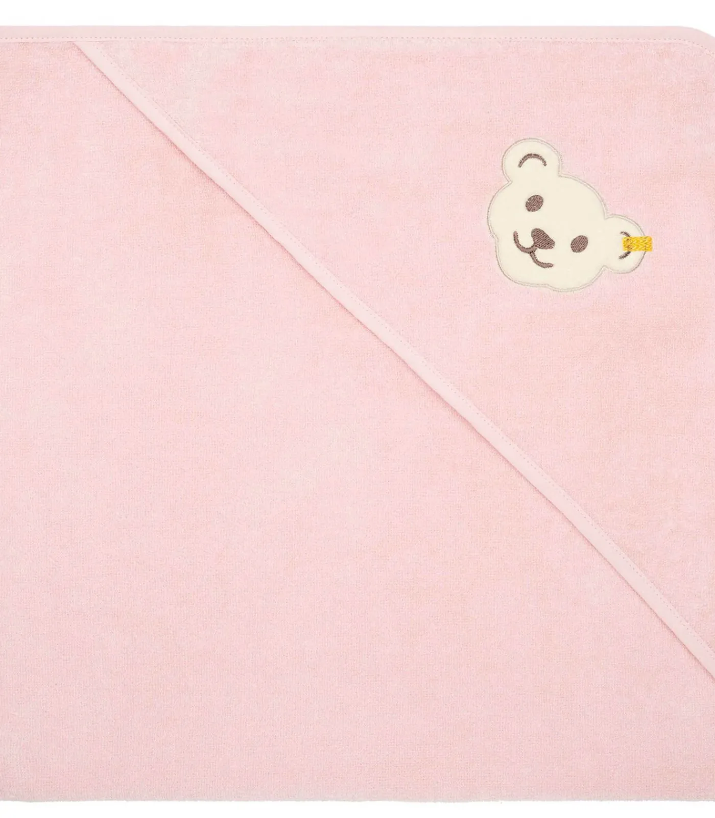 Pluizige, zachte badstof badhanddoek van het merk Steiff. Grote capuchon met teddybeermotief. Behoudt zijn vorm dankzij slijtvaste boorden, puur katoen.