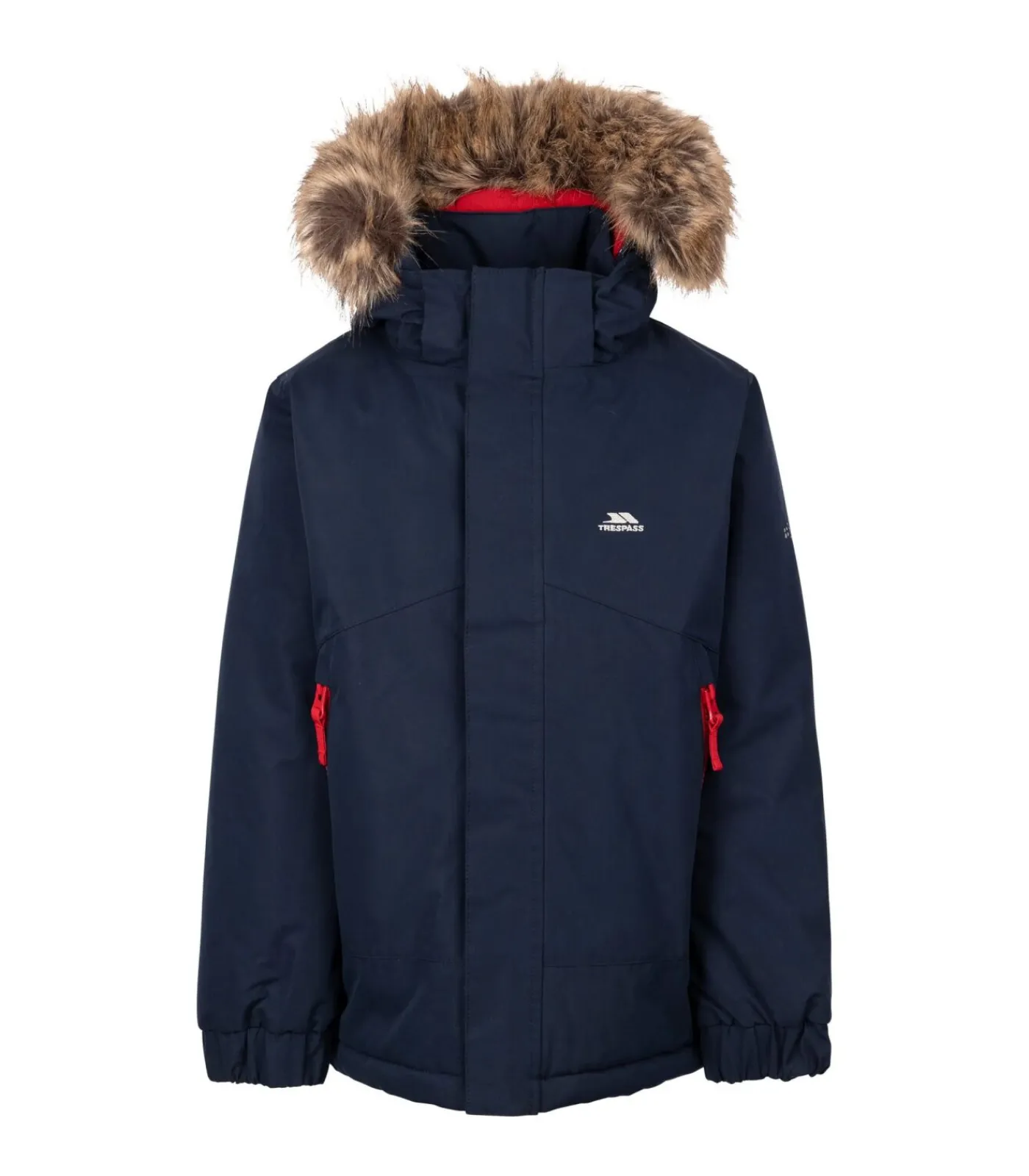 Dit is een beschrijving van de Trespass Children’s/Kids Wyald Waterproof Jacket. Het buitenmateriaal is een 100% polyester microvezelmix, met een 100% polyester vulling en voering. De stof heeft een PVC–coating. Het ontwerp is voorzien van contrasterende details, een logo en een effen stijl. De jas is voorzien van Tres–Shield waterdichte technologie. De manchetten zijn elastisch en de hals heeft een staande kraag met capuchon. De jas heeft lange mouwen en is gewatteerd. De capuchon heeft een afneembare rand van imitatiebont en is zelf ook afneembaar. Er zijn twee zijzakken met ritsen. Hij heeft een stormflap en ritssluiting. De waterdichtheid is 5000mm. De maat loopt van 2–3 jaar (20 inch) tot 11–12 jaar (31 inch).