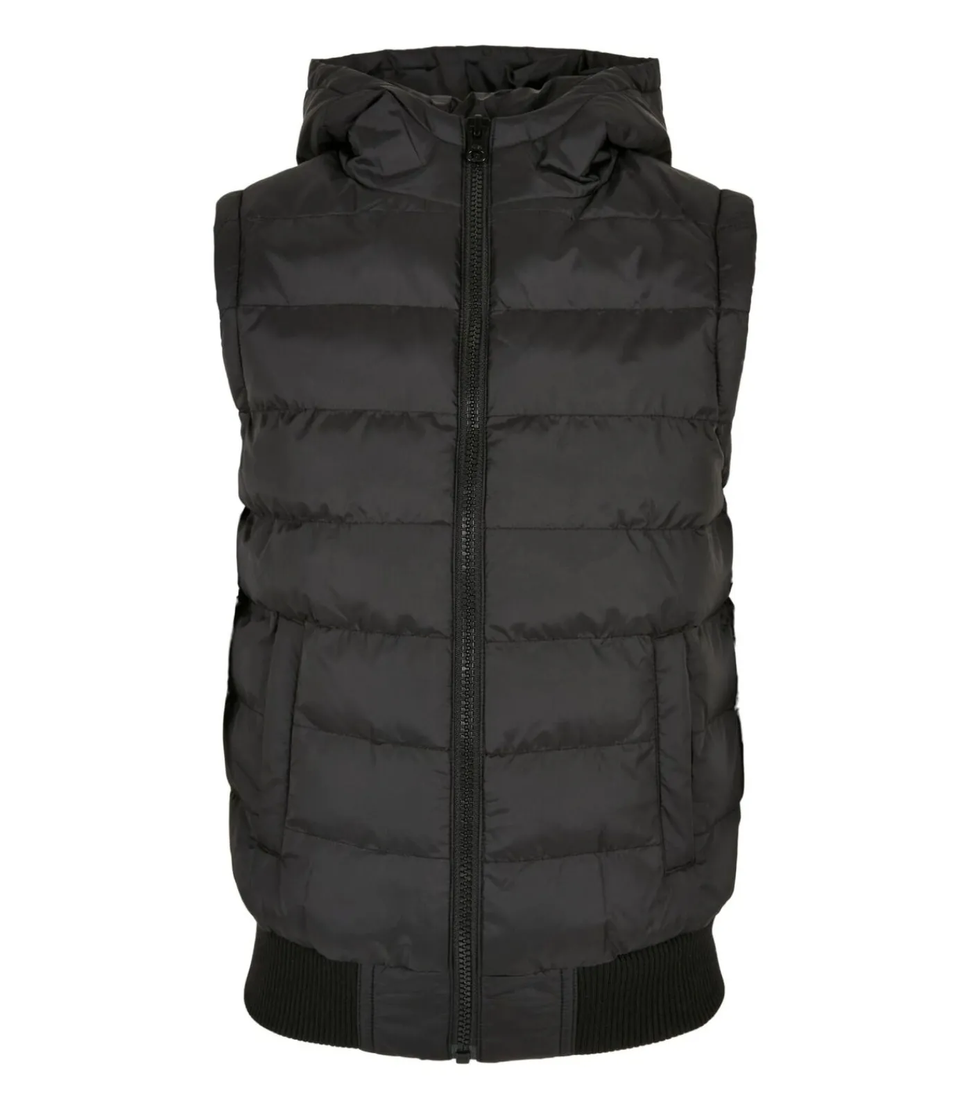 Het Urban Classics Boys Padded Hooded Snug Fit Gilet is een mouwloos vest met capuchon, ontworpen voor een goede pasvorm. De buitenkant is gemaakt van een geweven mix van nylon en polyamide, terwijl de voering 100% polyester is met een 230T weving. Het vulmateriaal is ook 100% polyester, met een dichtheid van 120gsm. De buitenstof heeft een denier van 40D en een gewicht van 68gsm, terwijl de voering 70gsm weegt. Het vest heeft een gewatteerd ontwerp en een meegroeibare capuchon, met een volledige ritssluiting voor gemakkelijk aan– en uittrekken. Dit gilet is verkrijgbaar in de maten 5–6 jaar (22 inch) tot 13–14 jaar (31 inch) en biedt een gestroomlijnd, gewatteerd silhouet voor jongens.
