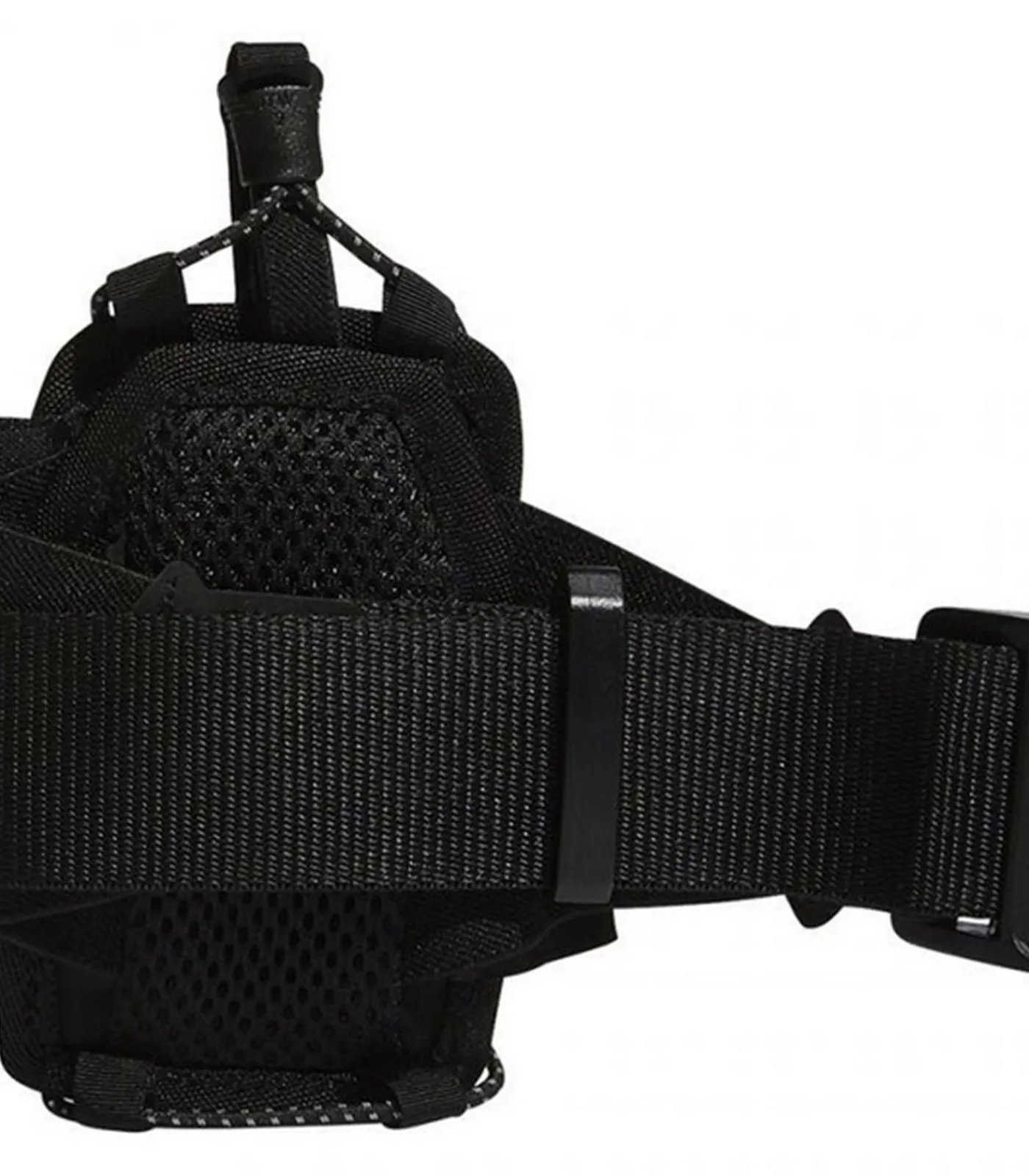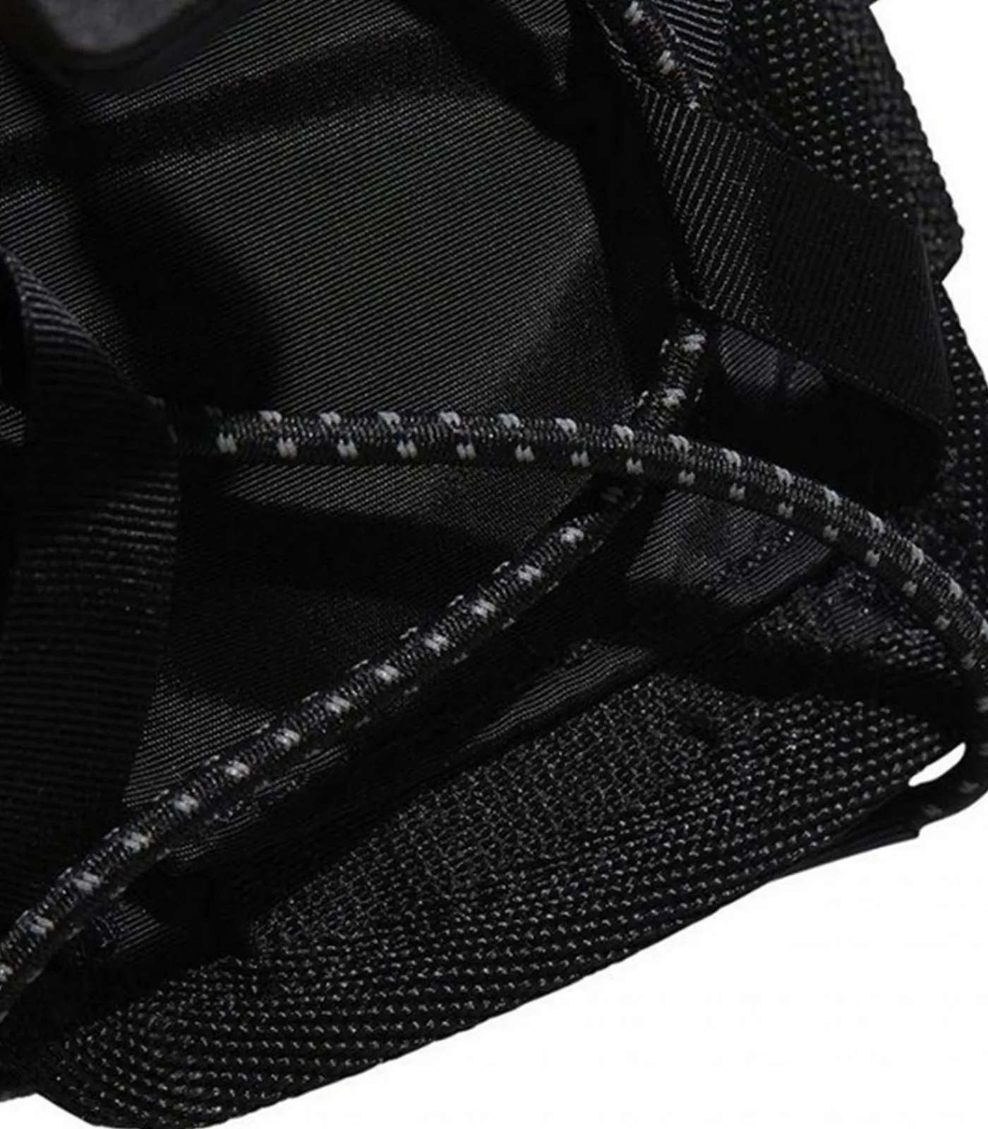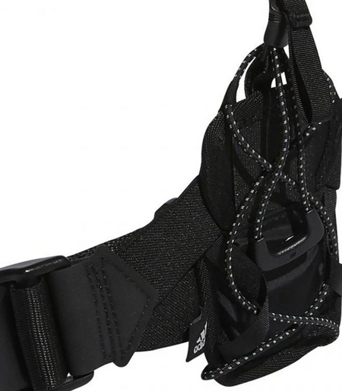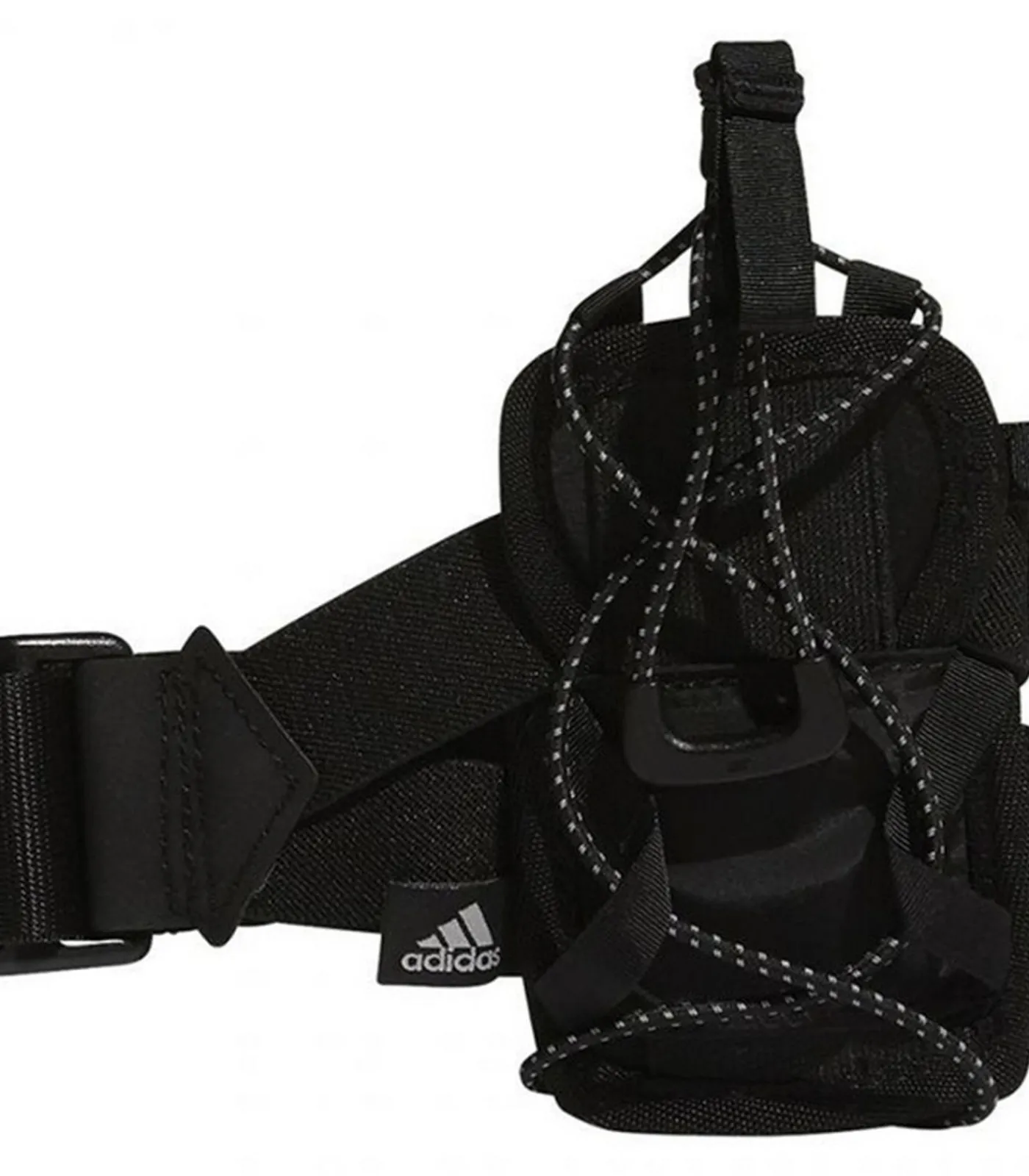 Adidas–merk enkele zwarte zakdoek met een 100% polyester vereniging. De zakdoeken hebben een stof, micro–gatvoering die zacht is. Het product heeft een hoogte van 12,5 cm en een breedte van 7 cm. Het bevat achterpaneelzakken en een waterfles en wordt vastgehouden door elastische riemen. De zakdoek draagt het embleem en label van Adidas.
