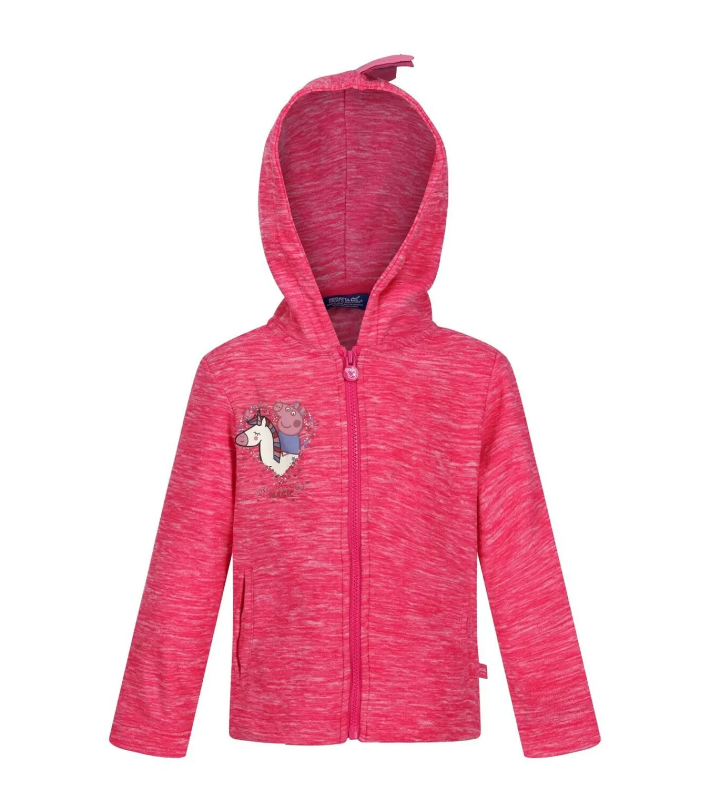 Dit artikel bevat de details van een Peppa Pig kinder–/kindersweatshirt met capuchon en ritssluiting. Het sweatshirtmateriaal bestaat uit 80% katoen en 20% polyester fleecestof met een gewicht van 145 gram per vierkante meter. Het ontwerp heeft een driedimensionale, gemarmerde print van Peppa Pig–figuren. Het sweatshirt heeft een meegroeibare capuchon en lange mouwen. Het heeft twee steekzakken en een rits aan de voorkant. Dit sweatshirt is officieel gelicenseerd met Peppa Pig auteursrechten.