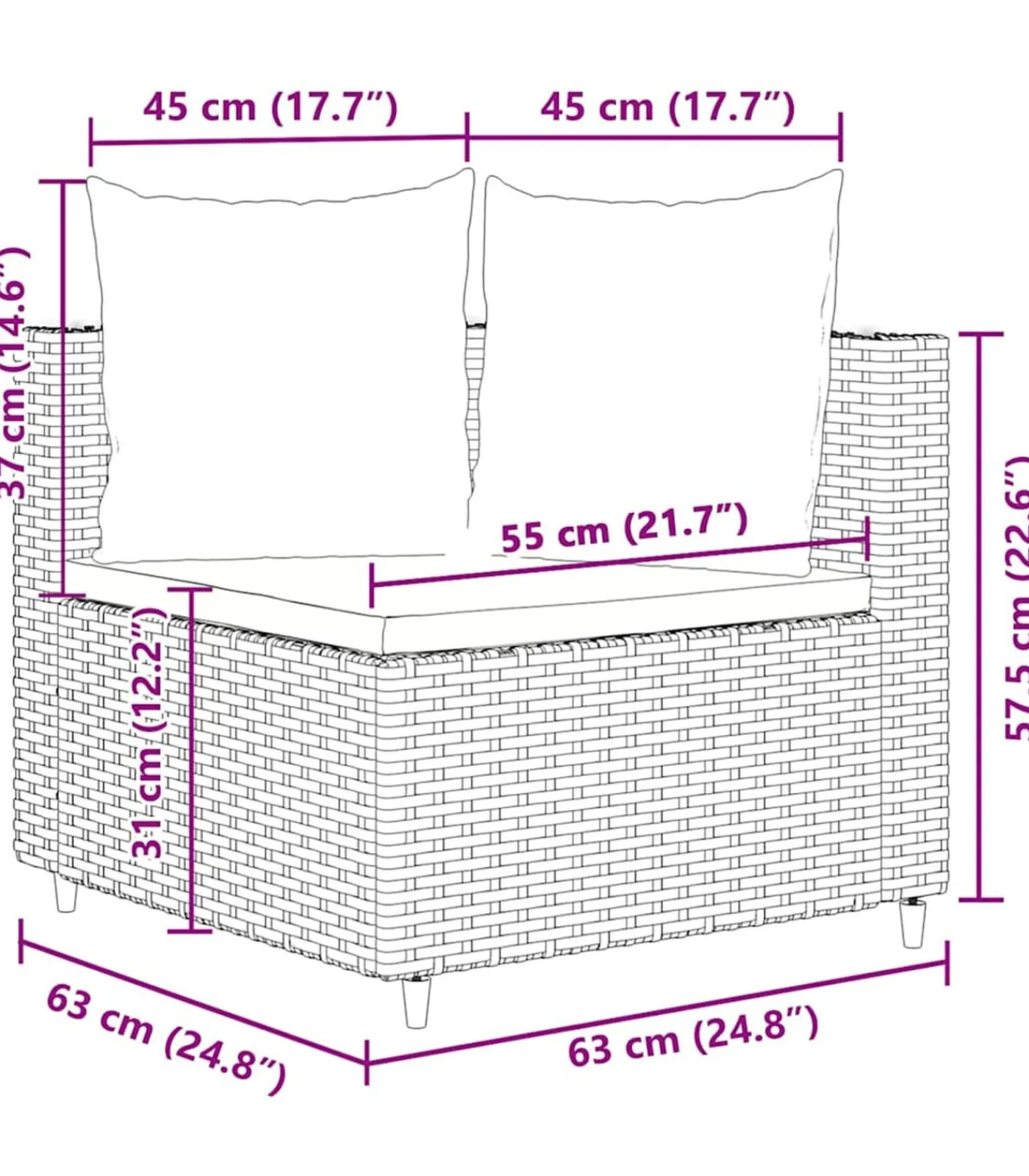 Afmetingen rugkussen (S): 45 x 37 cm (B x D)