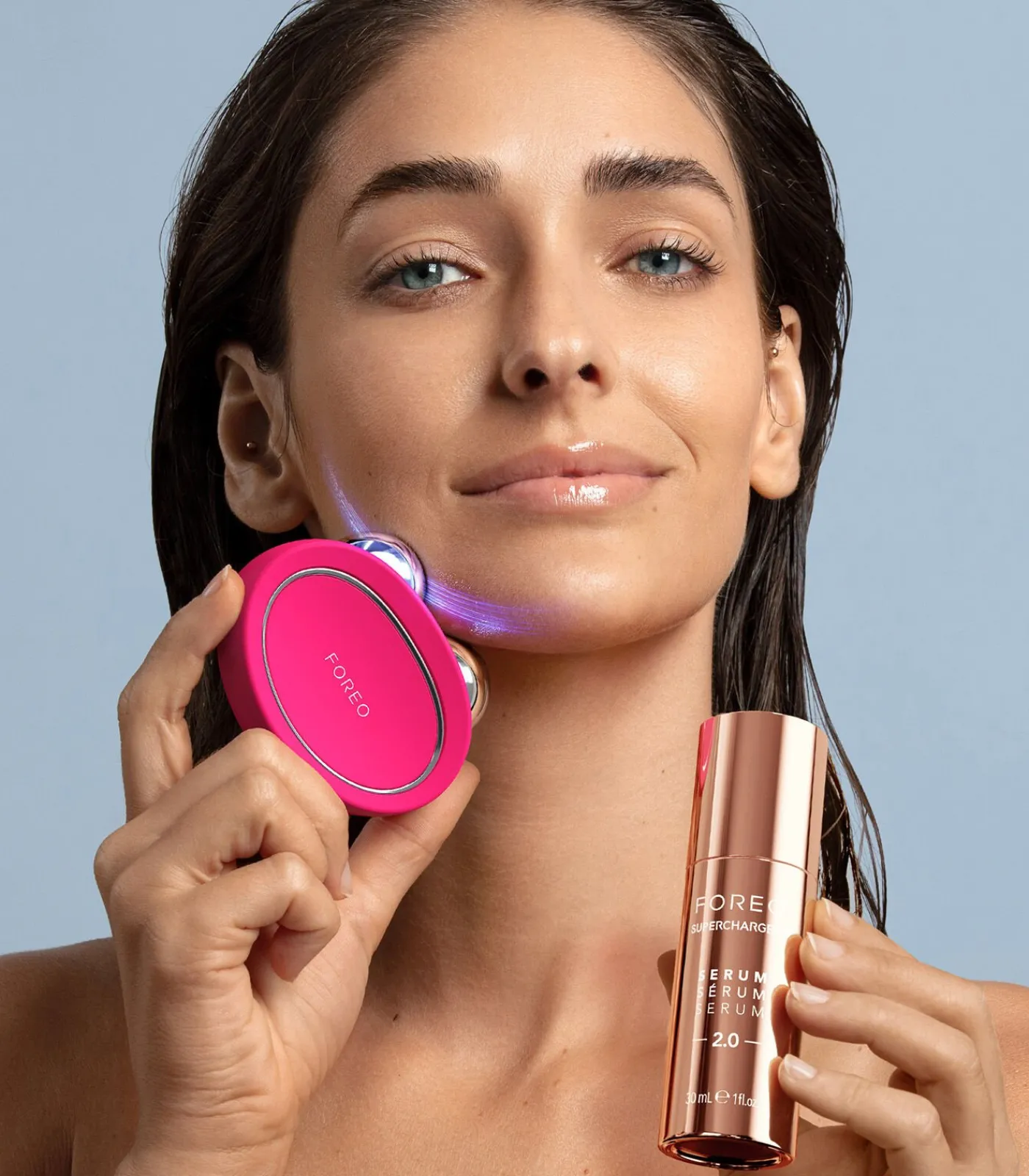 ZWEEDS FULL–FACELIFT APPARAAT, ZONDER PIJNDe tweede generatie BEAR™, een extreem effectief en niet–invasief verstevigingsapparaat, brengt ’s werelds eerste microcurrent apparaat met 4 soorten revolutionaire microcurrent patronen. De microcurrent van BEAR™ 2 dringt diep door tot in de 65+ spieren in gezicht en hals, verstevigt de spieren en de huid voor langdurige anti–aging resultaten. Het is een veilig en pijnloos alternatief voor een chirurgische ingreep, waarbij je geniet van een aangename, maar intense, microcurrent behandeling om de huid te verstevigen, liften en contouren – met vermindering van zichtbaarheid van rimpels, fijne lijntjes en meer stevigheid en elasticiteit in slechts één week.BEAR™ 2 combineert geavanceerde microcurrent met 5 gepatenteerde T–Sonic™ massagepatronen om de opname van skincare producten te verbeteren, microcirculatie en lymfedrainage te stimuleren. Dit zorgt ervoor dat de huidcellen meer voedingsstoffen krijgen en gifstoffen beter kunnen worden afgevoerd, voor een direct stralende, vollere, gevoede en soepelere huid. Het gepatenteerde Anti–Shock System™ 2.0 zorgt voor veiligheid en comfort. BEAR™ 2 moet worden gebruikt met een geleidend serum. Wij bevelen het FOREO SUPERCHARGED™ Serum 2.0 aan, waarvan is bewezen dat het de productie van type 1 collageen verhoogt voor een tijdloze uitstraling. En dit allemaal vanuit het comfort van je eigen huis, pijnloos en volgens je eigen regels!