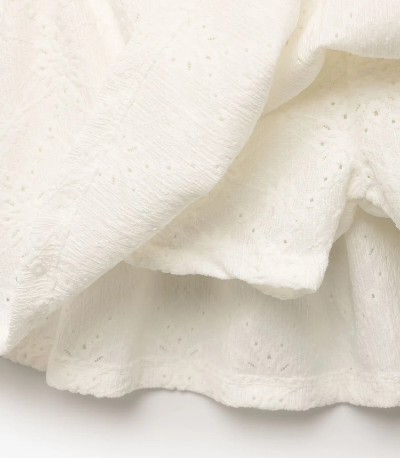Voluminous broderie mini skirt.
