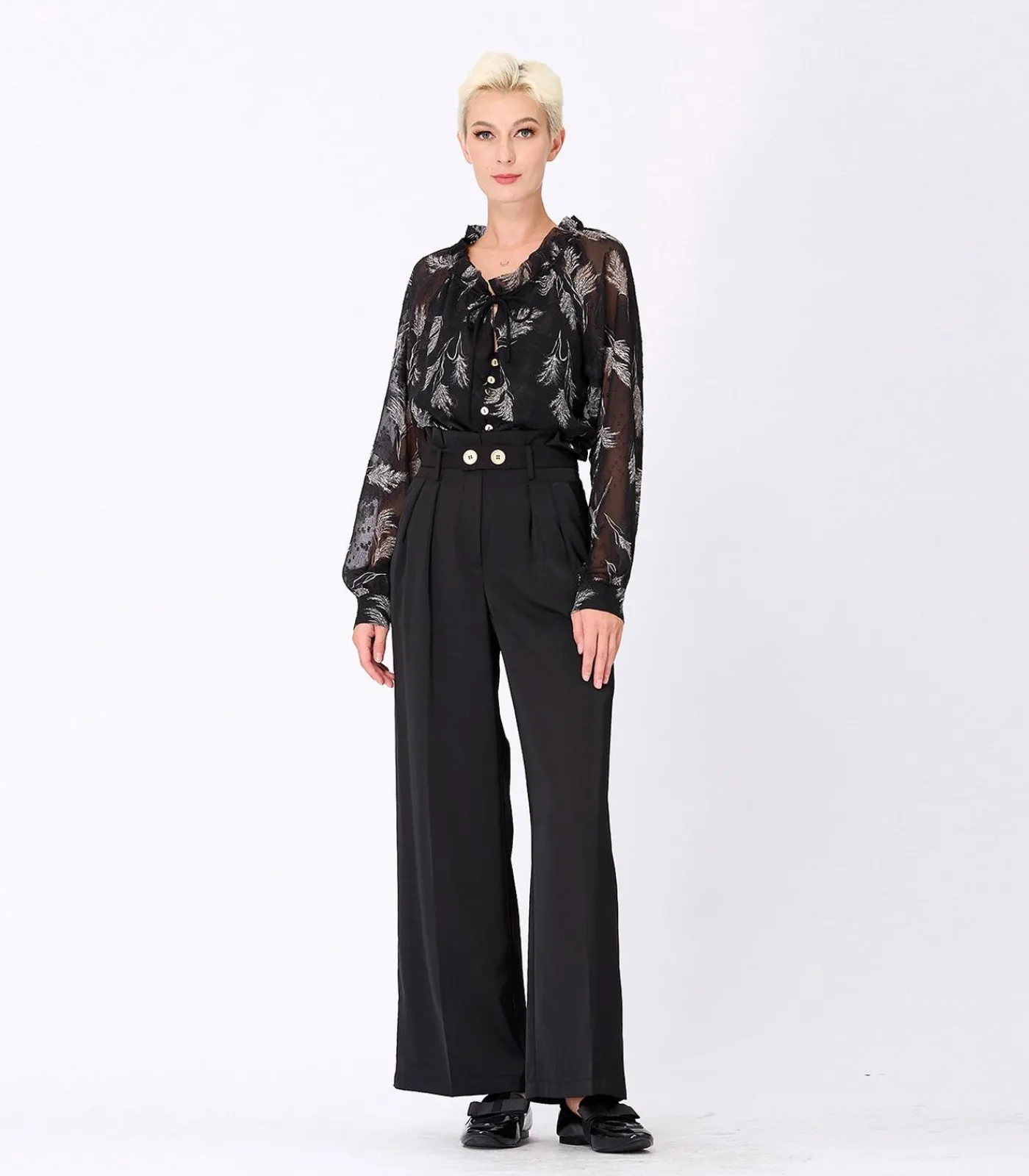 • Mouwen: Lang, geplooid bij de polsen met een knoopje