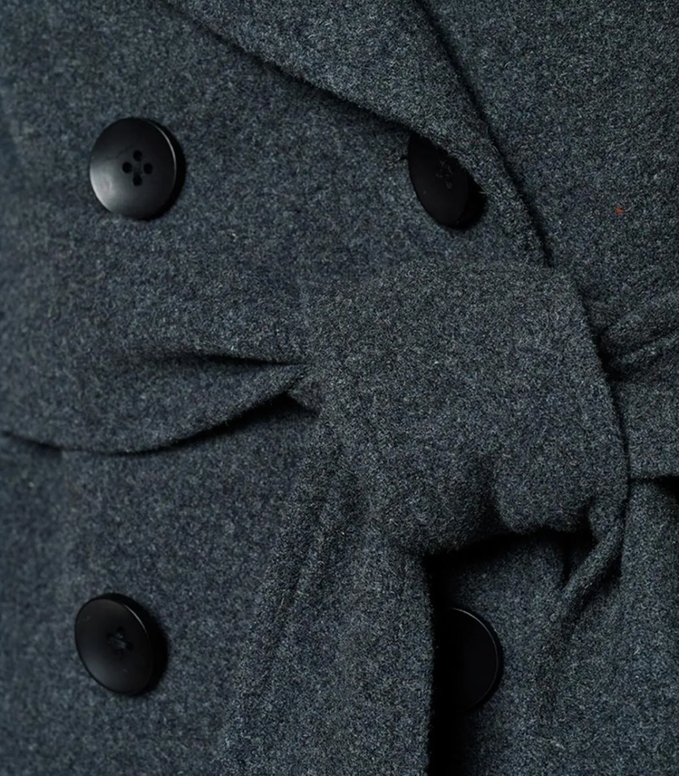 Ontdek de Chloe jas in donkergrijs, een perfecte mix van elegantie, comfort en moderne luxe. Deze lange wollen winterjas van Mart Visser is ontworpen voor vrouwen die klassieke stijl waarderen, maar houden van een eigentijdse uitstraling. De jas is gemaakt van een hoogwaardige wolmix en volledig gevoerd, waardoor hij zelfs op koude dagen heerlijk warm en comfortabel blijft. Het model heeft een rechte, licht oversized pasvorm en valt mooi over de knie. De bijgeleverde strikceintuur maakt het eenvoudig om de taille te accentueren voor een vrouwelijk silhouet, terwijl de dubbele zwarte knopen voor een tijdloze, chique look zorgen. Extra karakter en functionaliteit bieden de brede kraag en schuin geplaatste klepzakken. Draag de jas open voor een casual effect of sluit hem en tailleer voor een elegante, meer formele uitstraling. De donkergrijze tint is veelzijdig en past bij zowel neutrale als opvallende kleuren. Combineer met een zwarte pantalon en blouse voor een zakelijke look of met rechte jeans en knitwear voor een casual, stijlvolle outfit.