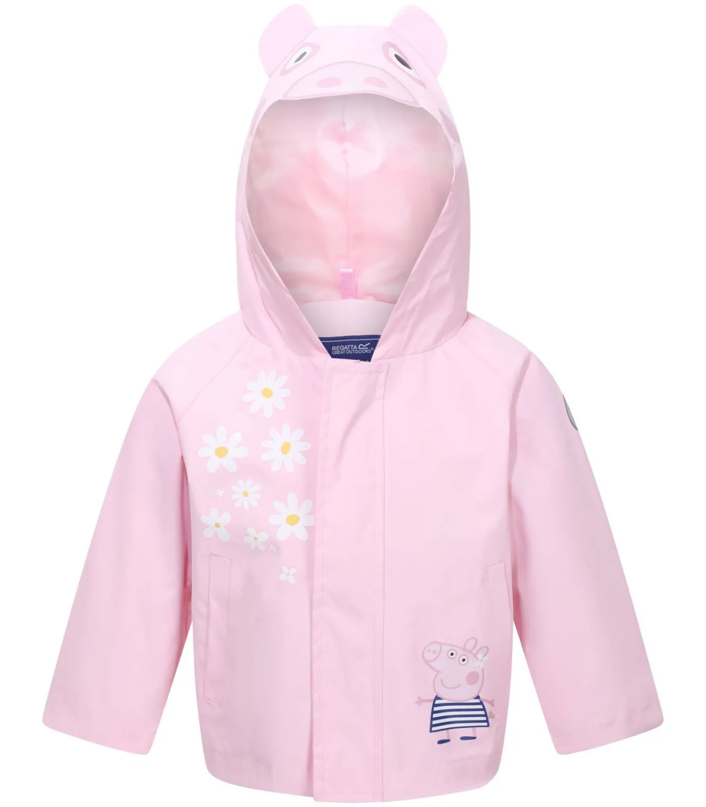 Deze waterdichte kinderjas van Regatta heeft de personages Peppa Pig en Rebecca Rabbit. Het is gemaakt van 100% polyester Hydrafort stof, dat waterdicht en lichtgewicht is. De jas heeft een volledige ritssluiting met een stormflap en een meegroeibare capuchon met reflecterende rand. Extra details zijn twee zakken aan de onderkant, lange mouwen en een gevormde zoom aan de achterkant. De technologie van de stof is ontworpen om de drager droog te houden in natte omstandigheden. Dit product met officiële licentie is zeer geschikt voor buitenspelen door kinderen.