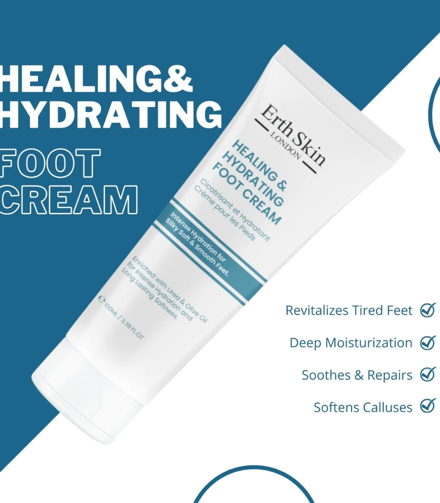 Verzacht en herstel droge gebarsten voeten met de Healing & Hydrating Foot Cream. Deze rijke crème samengesteld met diep voedende Olea Europaea (olijfolie) en ureum hydrateert en verzacht de ruwe huid intensief en helpt vermoeide voeten te herstellen en te revitaliseren. L–menthol zorgt voor een verkoelend gevoel en biedt direct verlichting en frisheid. De snel intrekkende formule verrijkt met cetearylalcohol en isopropylpalmitaat sluit vocht in zonder een vettig gevoel achter te laten. Ervaar gladde soepele en frisse voeten bij elke toepassing. Perfect voor dagelijks gebruik om zachte en gezonde voeten te behouden.