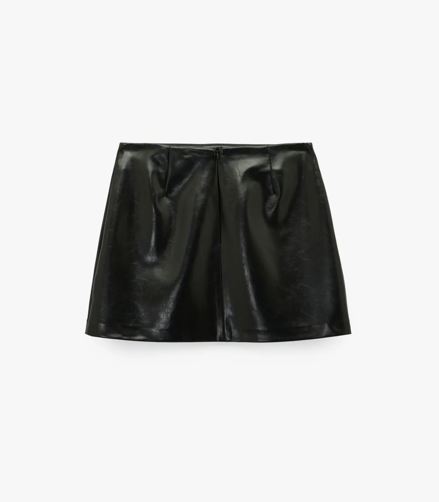 Deze mini–rok van kunstleer voegt een moderne en gedurfde uitstraling toe aan je garderobe. De metallic studs zorgen voor een eigentijds detail dat opvalt. De standaard taille biedt een comfortabele pasvorm geschikt voor diverse gelegenheden. Perfect te combineren met een blouse en hakken voor een chique look, of met sneakers en een t–shirt voor een casual uitstraling. Een veelzijdig stuk dat je moeiteloos kunt stylen voor werk, vrije tijd of een avondje uit.