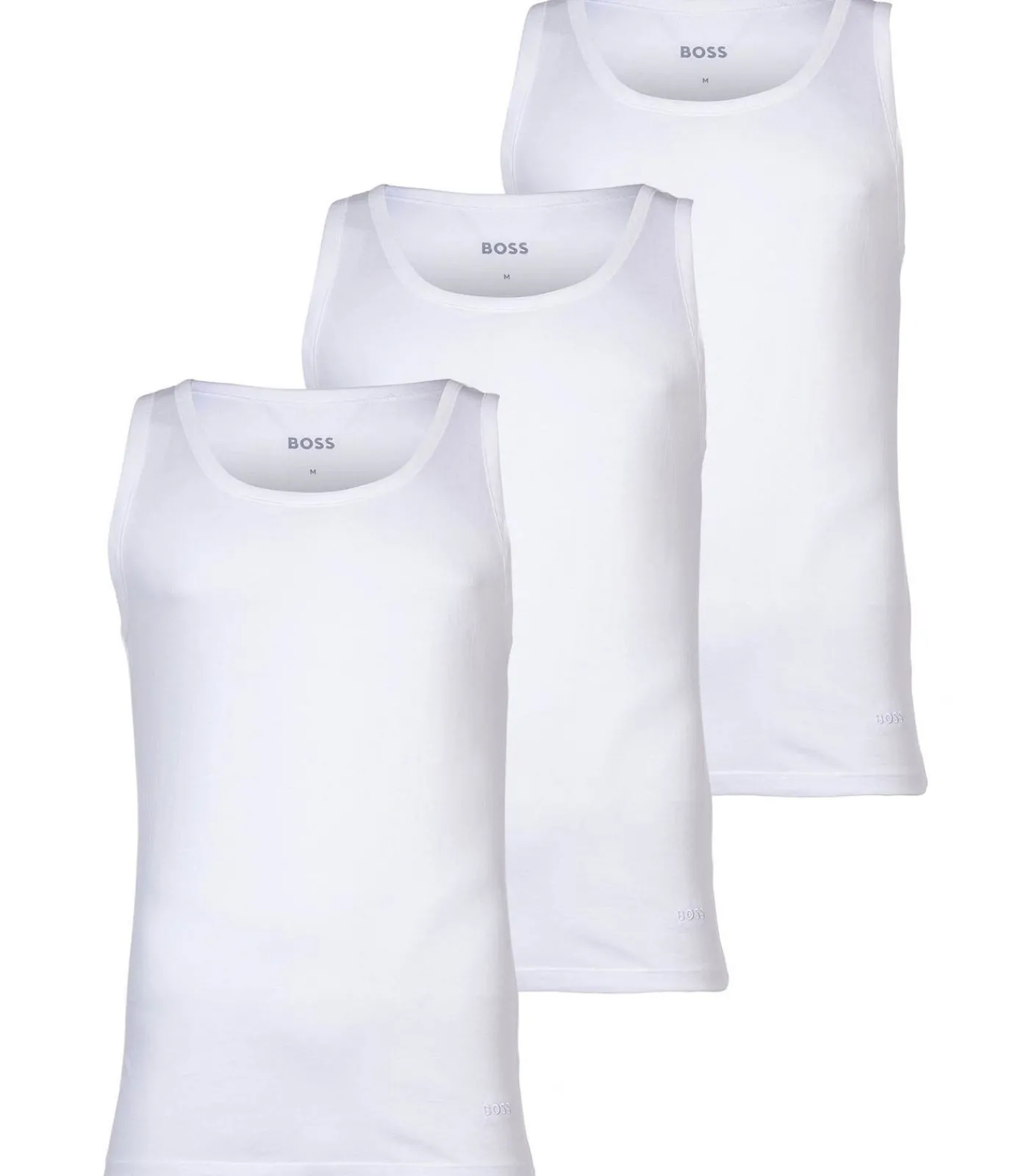 Mouwloos vest voor heren van het merk BOSS. In een aantrekkelijke verpakking van drie. Ronde hals, gemaakt van zuiver ademend katoen jersey, normale pasvorm.
