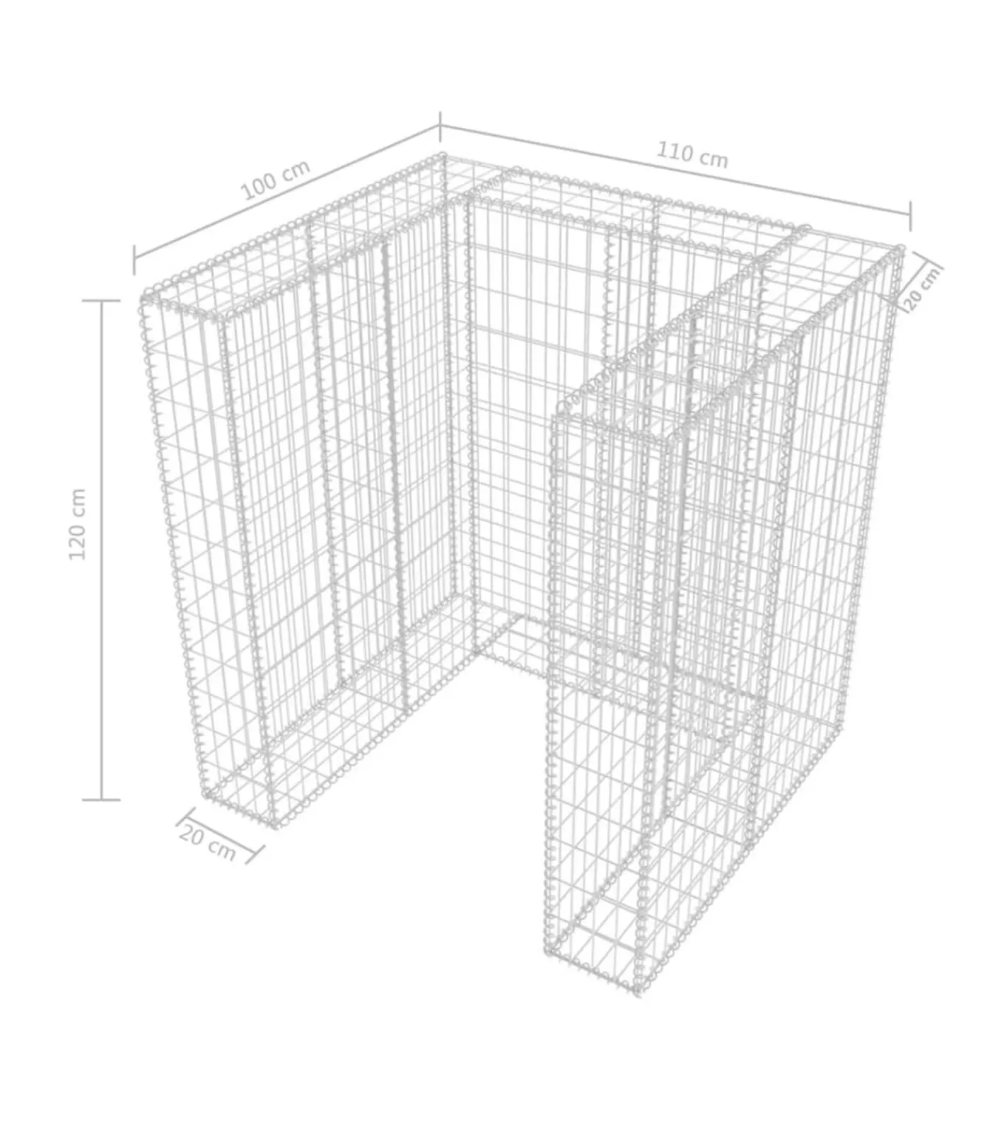 Deze stabiele en duurzame afvalcontainer schanskorf ombouw is gemaakt van roest– en weerbestendig gegalvaniseerd staal. Het gaasrooster is gevormd door de horizontale en verticale draden aan elkaar te lassen bij iedere kruising. De gabion is erg stevig dankzij de draaddiameter van 3,5 mm. De deksels aan de boven– en onderkant van de korf houden de inhoud op zijn plek.