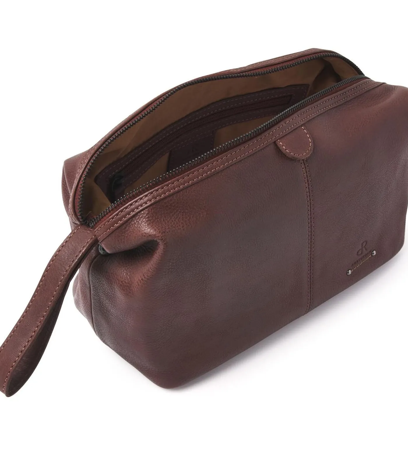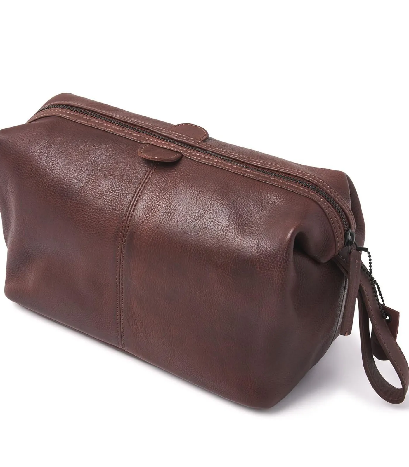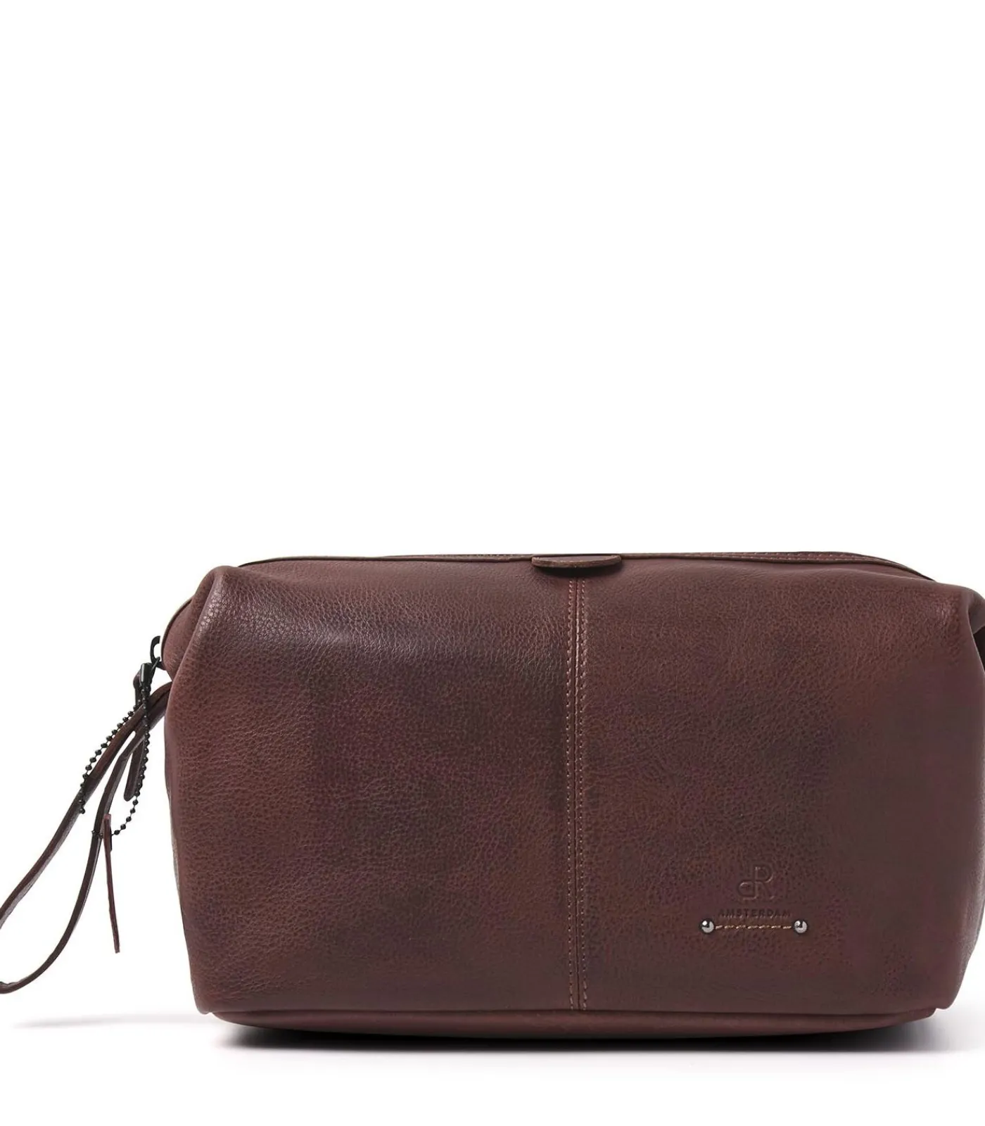 Deze leuke toilettas is gemaakt van zacht rundleder, wat je gelijk een fijn gevoel geeft als je deze in de hand hebt. De toilettas heeft een polsbandje om makkelijk mee te kunnen nemen en op te hangen in de badkamer. Voor optimaal gebruiksgemak is de tas afsluitbaar met een rits aan de bovenzijde waaronder een groot opbergvak beschikbaar is. De binnenzijde heeft een ritsvak en sleutelhanger waar je bijvoorbeeld ook ons make–up tasje aan kunt vast maken. Daarnaast is er een steekvakje voor je telefoon of kleinere spullen.