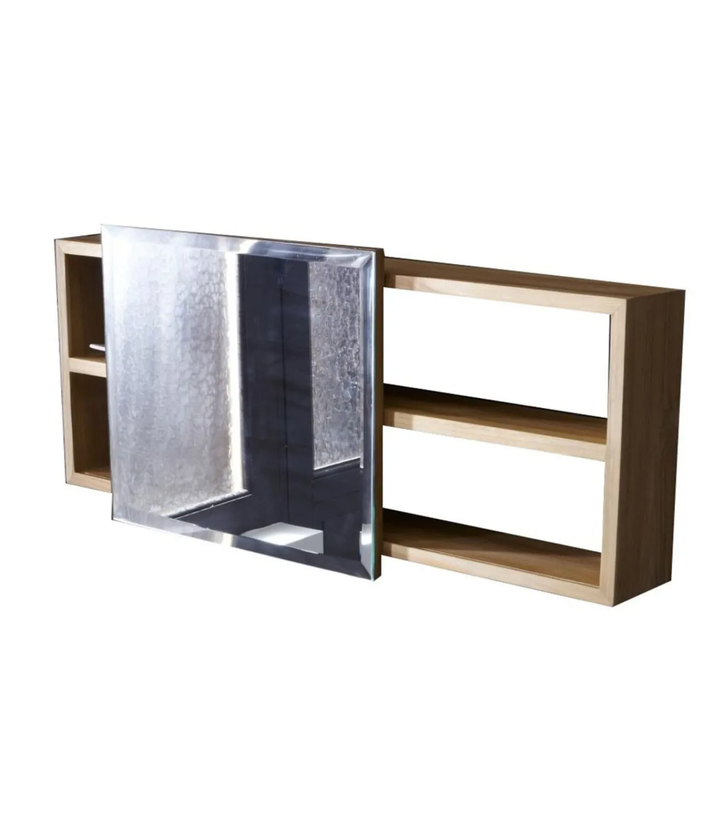 Laat u verleiden door de originaliteit van dit spiegelrek van massief FSC®–teakhout!Dankzij de praktische dubbele functie van dit badkamermeubel, dat zowel een opbergrek als een schuifspiegel is, kunt u uw badkamerruimte optimaal organiseren.Met het Typo badkamermeubel en het Typo kolommeubelwordt uw badkamer een toonbeeld van moderniteit en elegantie …