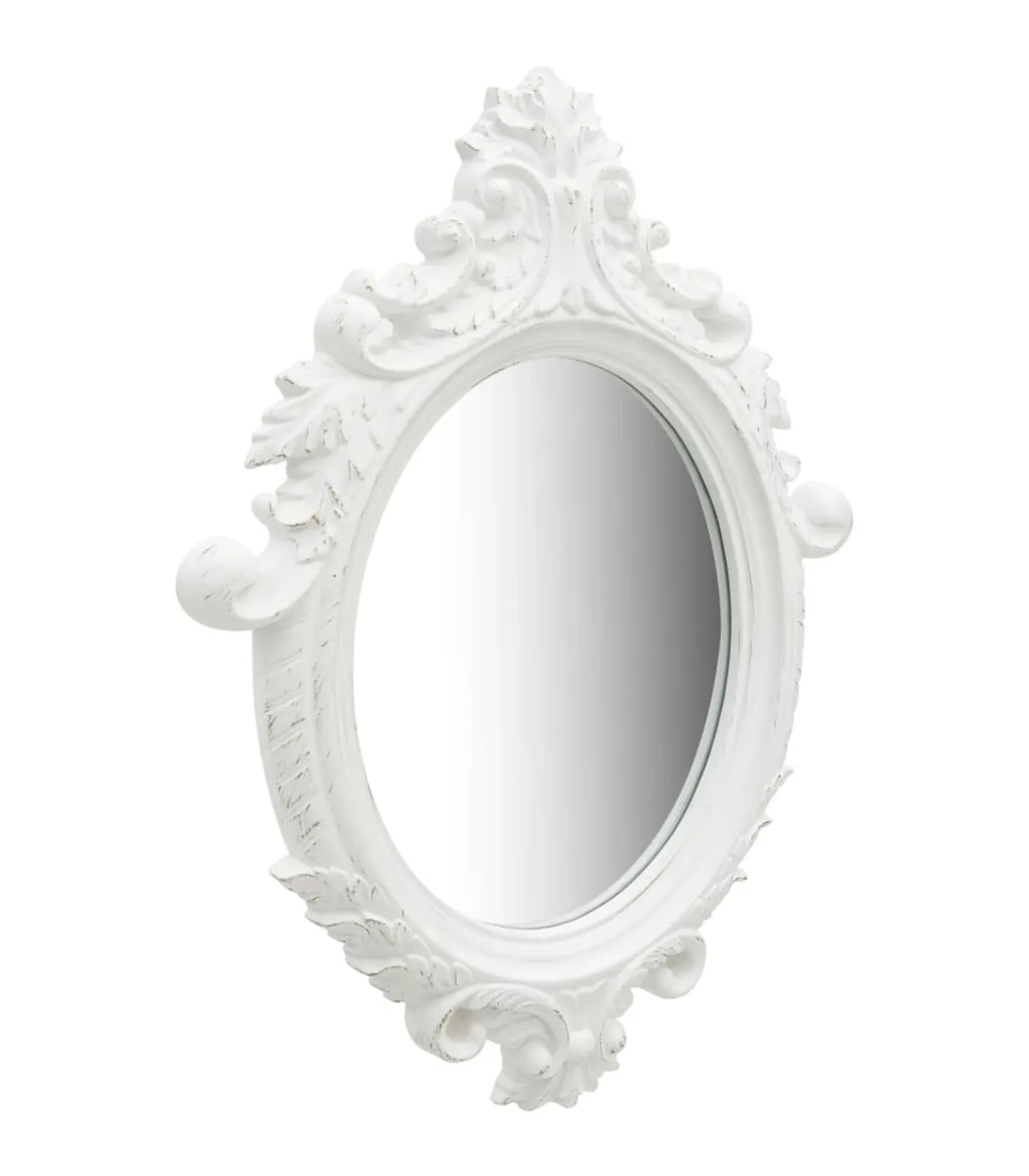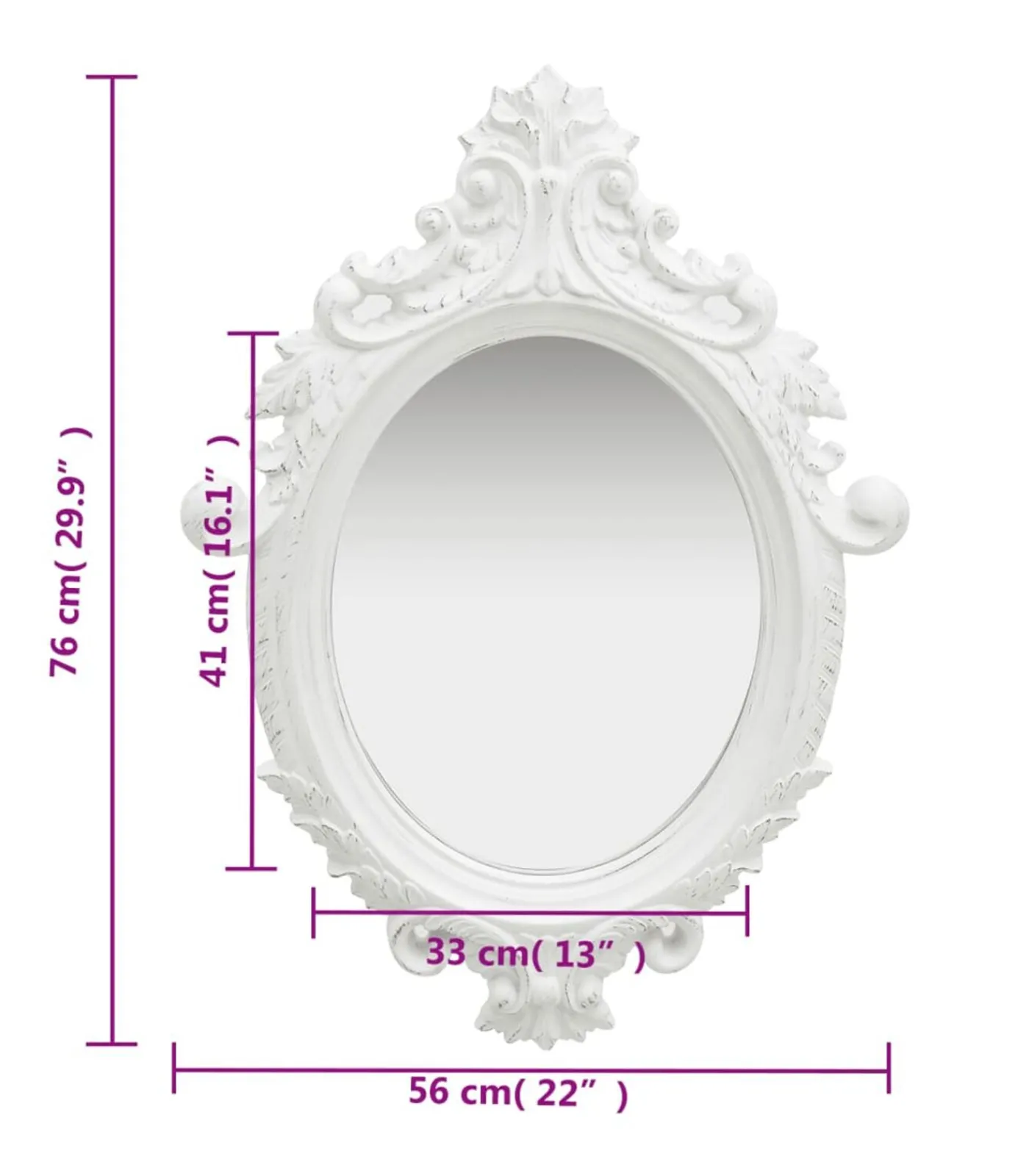 Deze spiegel met antieke uitstraling heeft een stevig PU frame dat zorgvuldig gemaakt is met een decoratief kasteelachtig patroon. Daarnaast geeft de platte rand deze spiegel een unieke look.