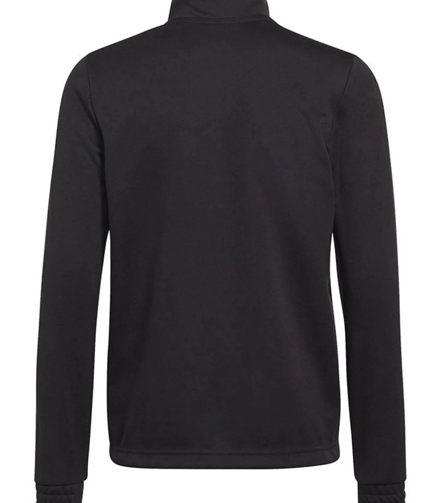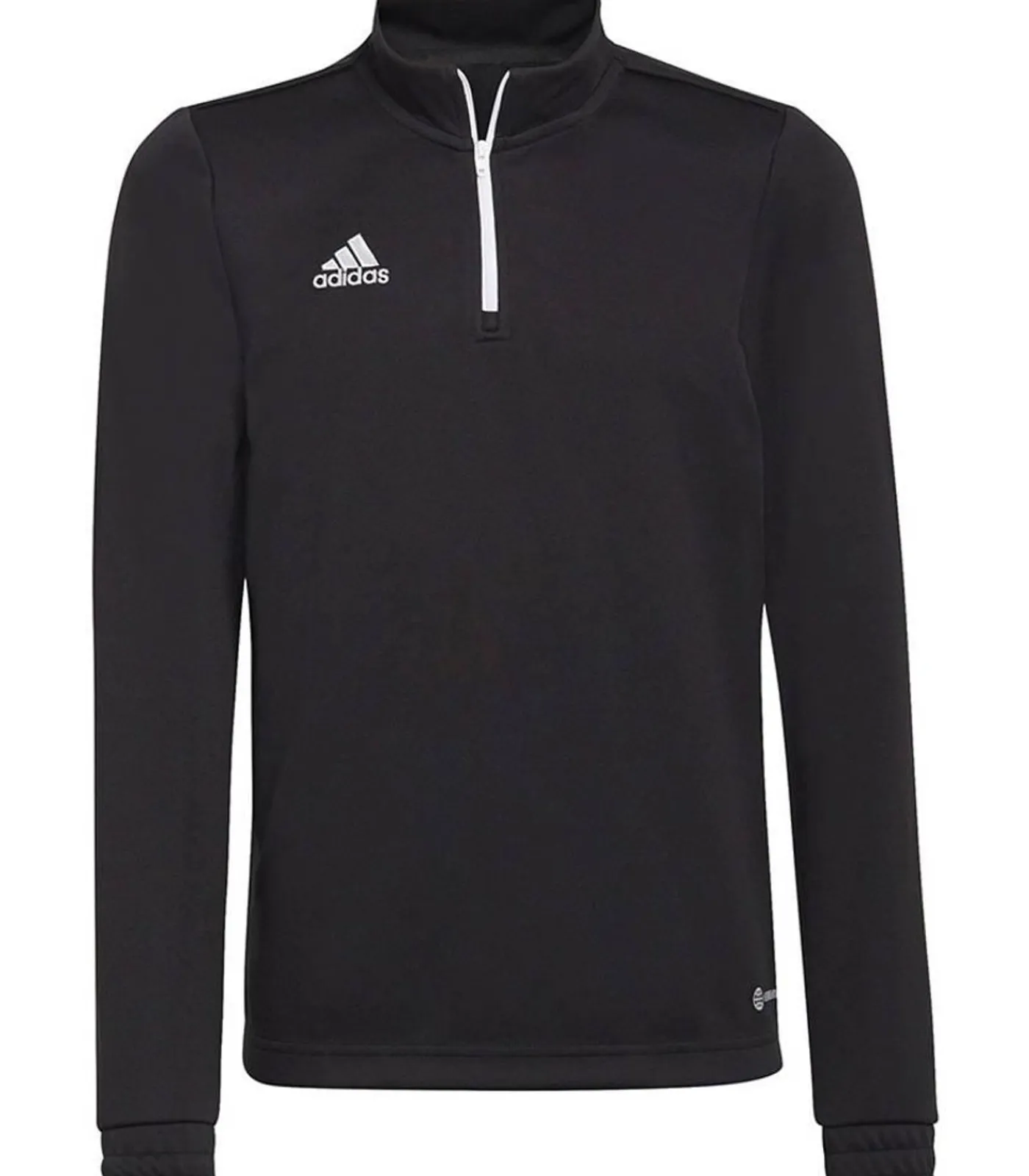 Adidas presenteert de ENTRADA 22 – Sweatshirt in zwart, een duurzame optie gemaakt van 100% recycled polyester. Het ontwerp is geaberdureerd met het logo van de merk op de voorzijde en een eenvoudige presentatie. De sweatshirt beschikt over Aeroready–technologie, waardoor het lichaam warm wordt. De manchetten zijn elastisch om meer comfort tijdens sportieve activiteiten te bieden. Het is een model met lange mouwen en een staande kraaghals. Het kan zowel gemonteerd als pull–over worden gedragen, met een kwart rits. De passingsmaat varieert van 7–8 jaar (25 inch) tot 13–14 jaar (34 inch).