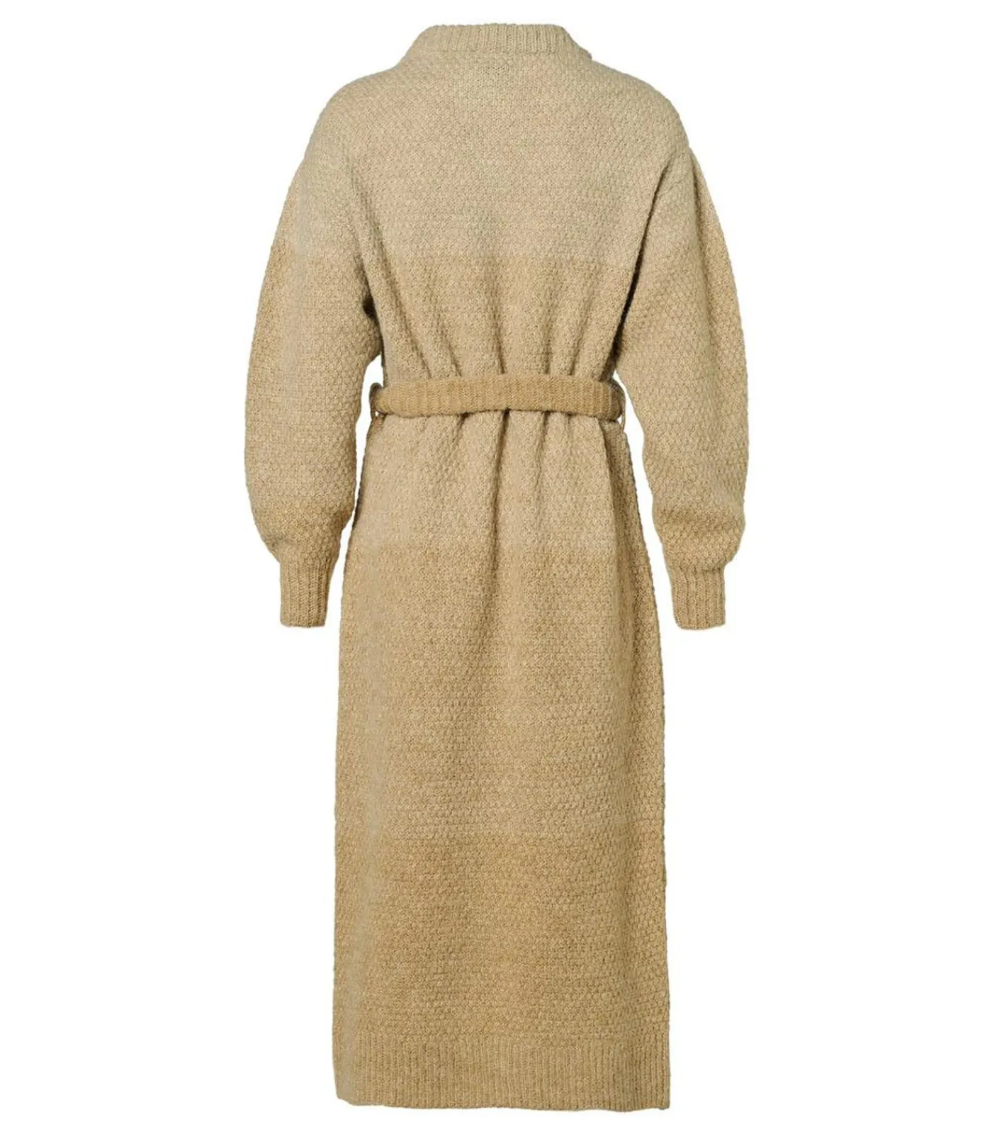 Combineer elegantie met comfort in dit lange zandkleurige vest van Mart Visser. Het grofgebreide vest valt direct op door de rijke structuur en het subtiele ombre–effect in vier zandtinten, verrijkt met gouden lurexdraad voor een luxe glans. De opstaande kraag en brede ribboorden bieden extra warmte en verfijning, perfect voor koelere dagen. De rechte pasvorm tot op de kuit geeft een ontspannen, moderne uitstraling, terwijl de lange mouwen en de strikceintuur een vrouwelijk silhouet mogelijk maken. De blinde sluiting zorgt voor een minimalistische, strakke afwerking, waardoor dit vest veelzijdig te combineren is met zowel zakelijke als casual outfits. Draag het over een eenvoudige top en pantalon voor een elegante kantoorlook, of combineer met jeans en sneakers voor een chique, ontspannen stijl. Dankzij de zachte, warme brei en de luxe details is dit vest een stijlvol en essentieel kledingstuk voor elk seizoen.