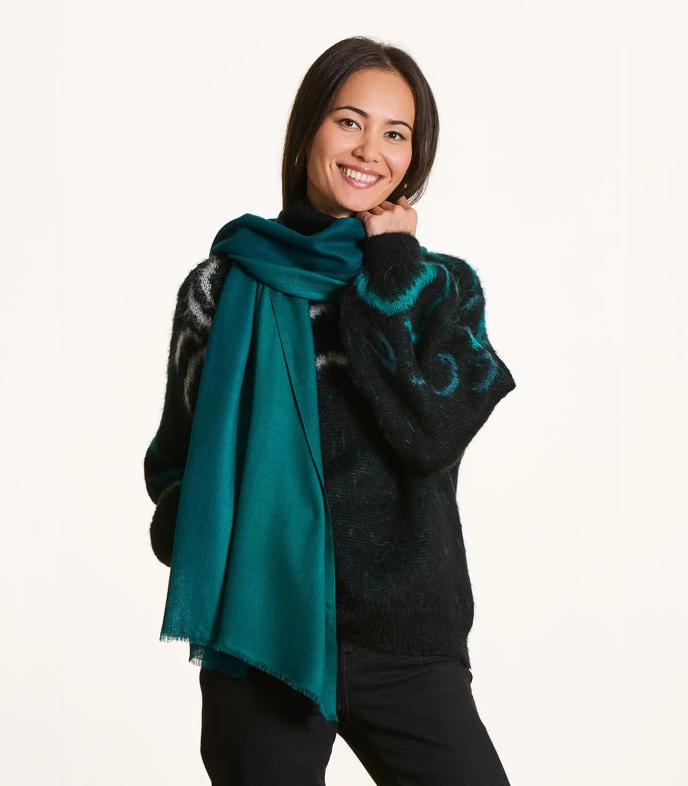 Online Groene sjaal van wol en zijde DAMES Sjaals